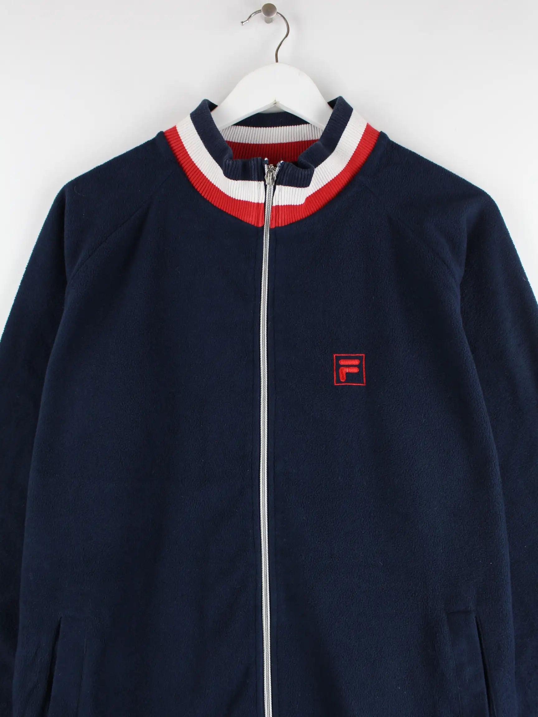 Leichte Jacke der Brand Fila in Größe M. Sie ist aus angenehmem Fleece gemacht und in Blau bei uns zu bekommen.