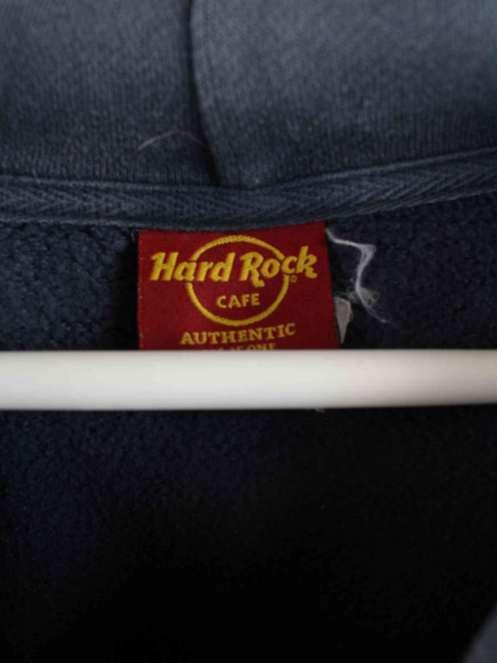 Hoodie aus dem Hause Hard Rock Cafe mit Stickereien in Größe XL. Er ist aus einer Baumwollmischung hergestellt und in Grau auf Lager.
