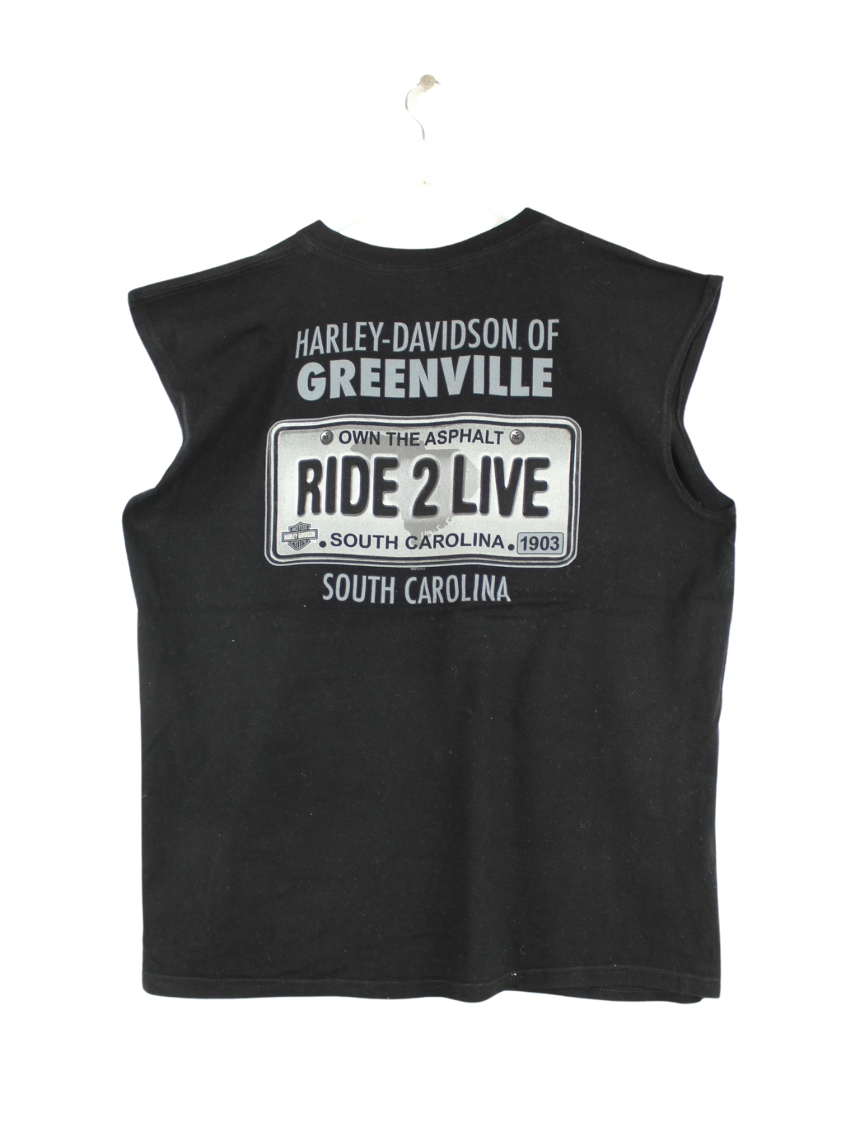 Tank Top von Harley Davidson in Größe XL. Er ist aus Baumwolle hergestellt und in Schwarz lieferbar. Mit chiquem Greenville Print.