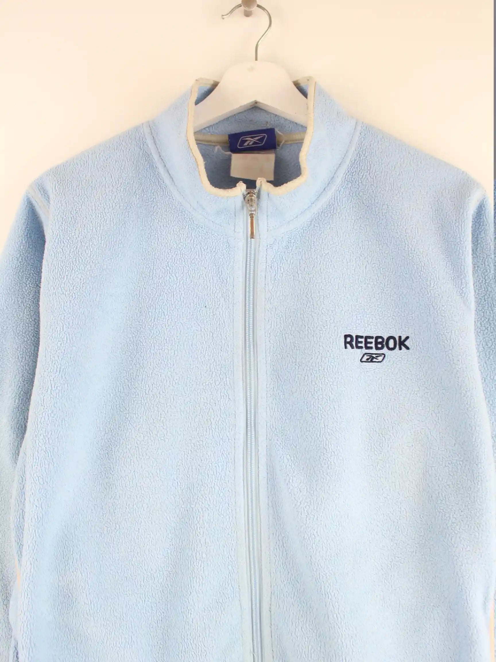 Blaue Leichte Jacke der Brand Reebok in Größe L. Sie ist aus gemütlichem Fleece gefertigt und in gutem Zustand im Angebot.