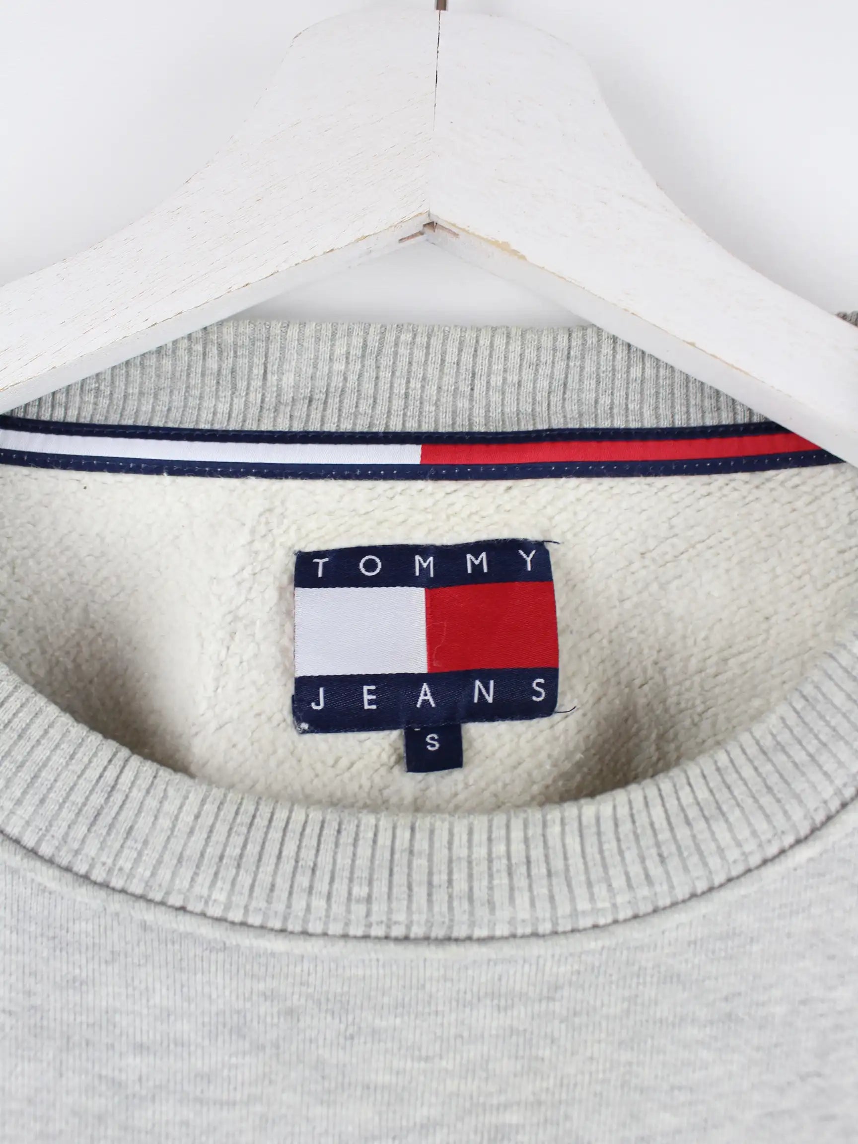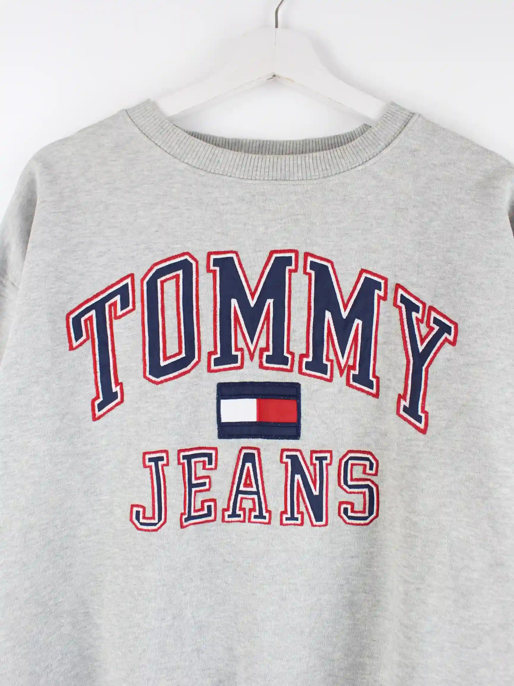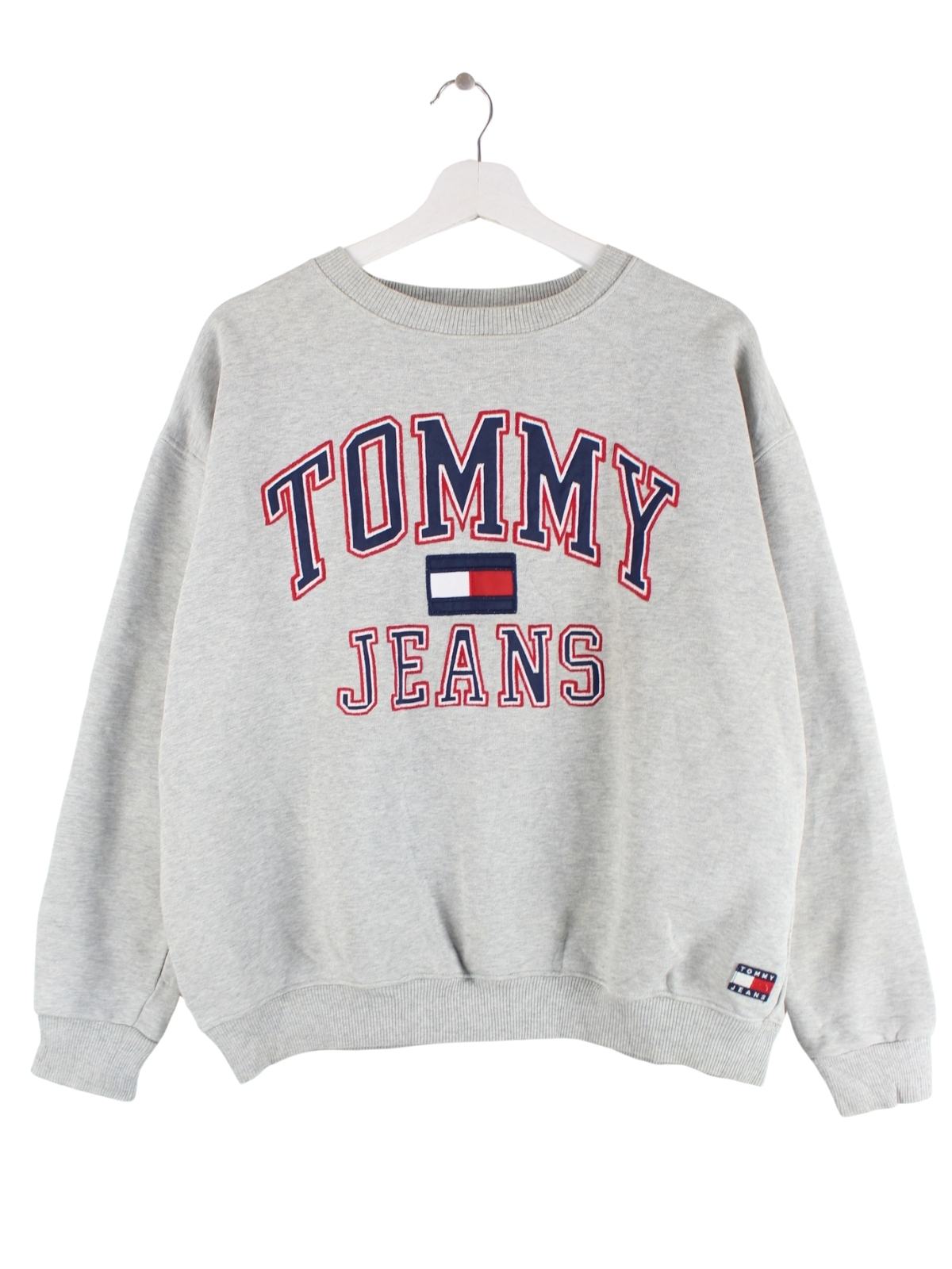 Sweater vom Brand Tommy Hilfiger in Größe S. Er ist aus einer Baumwollmischung gemacht und in Grau im Bestand.