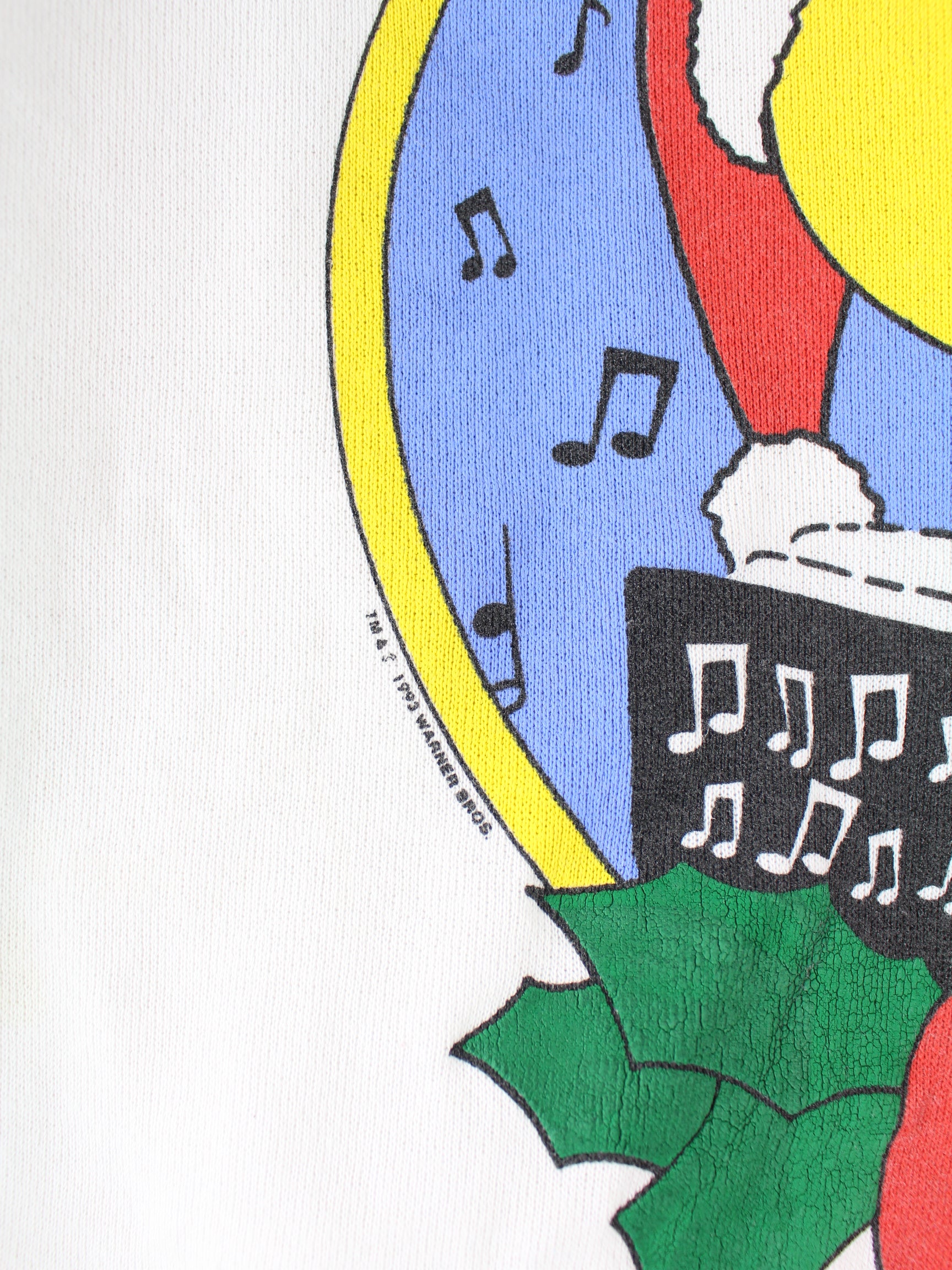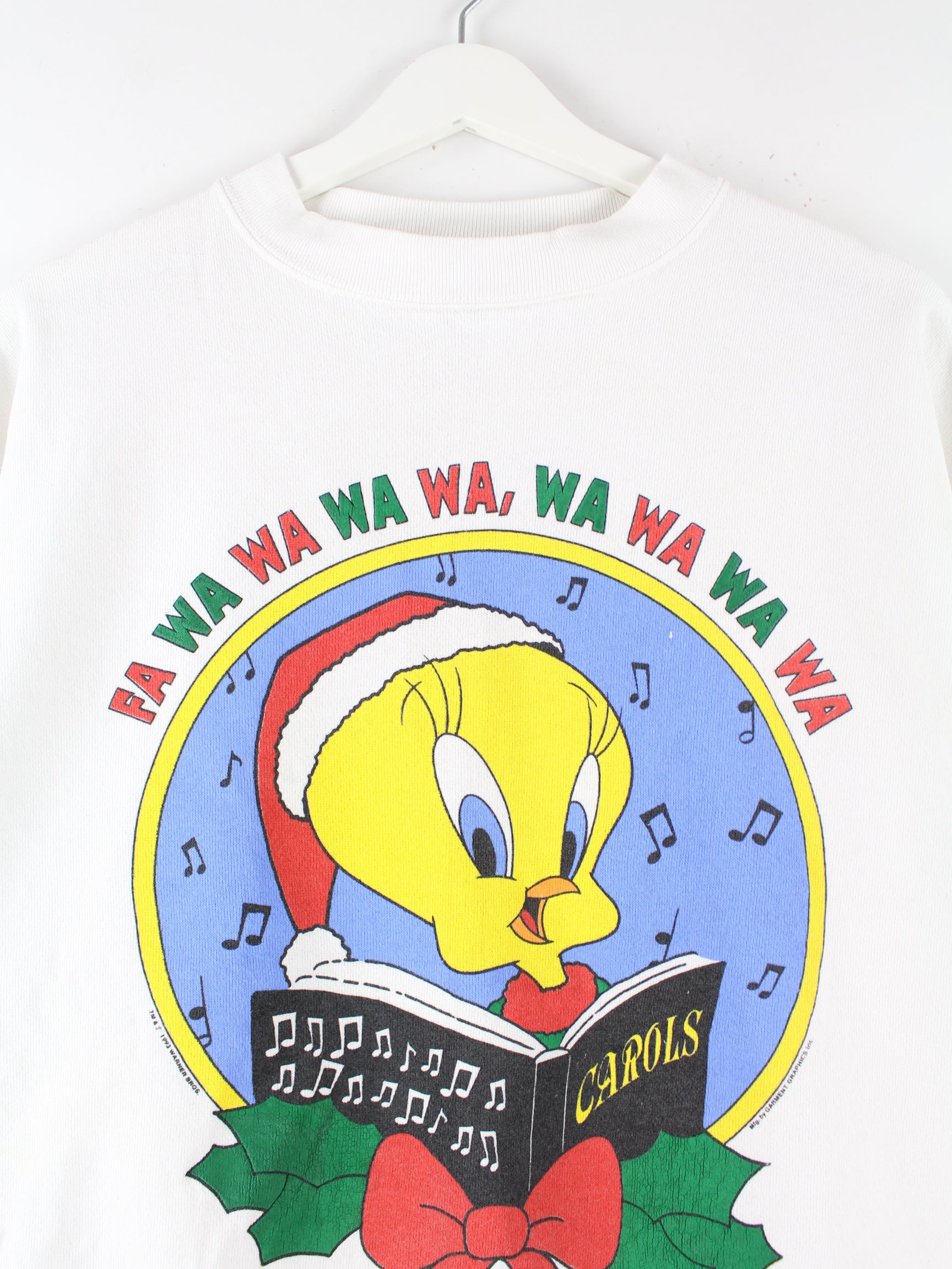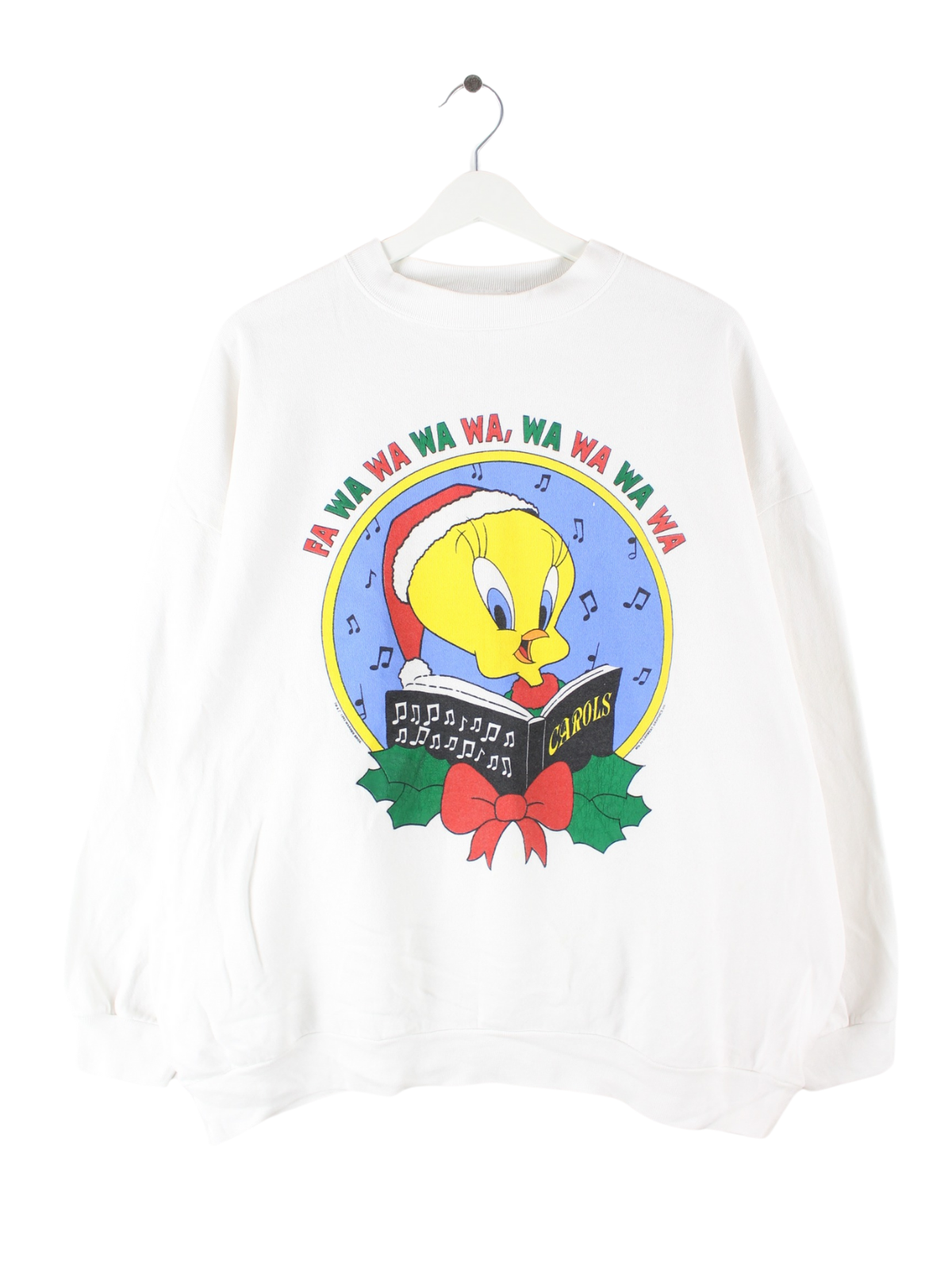 Looney Tunes 1993 Vintage Tweety Christmas Print Sweater Weiß XL