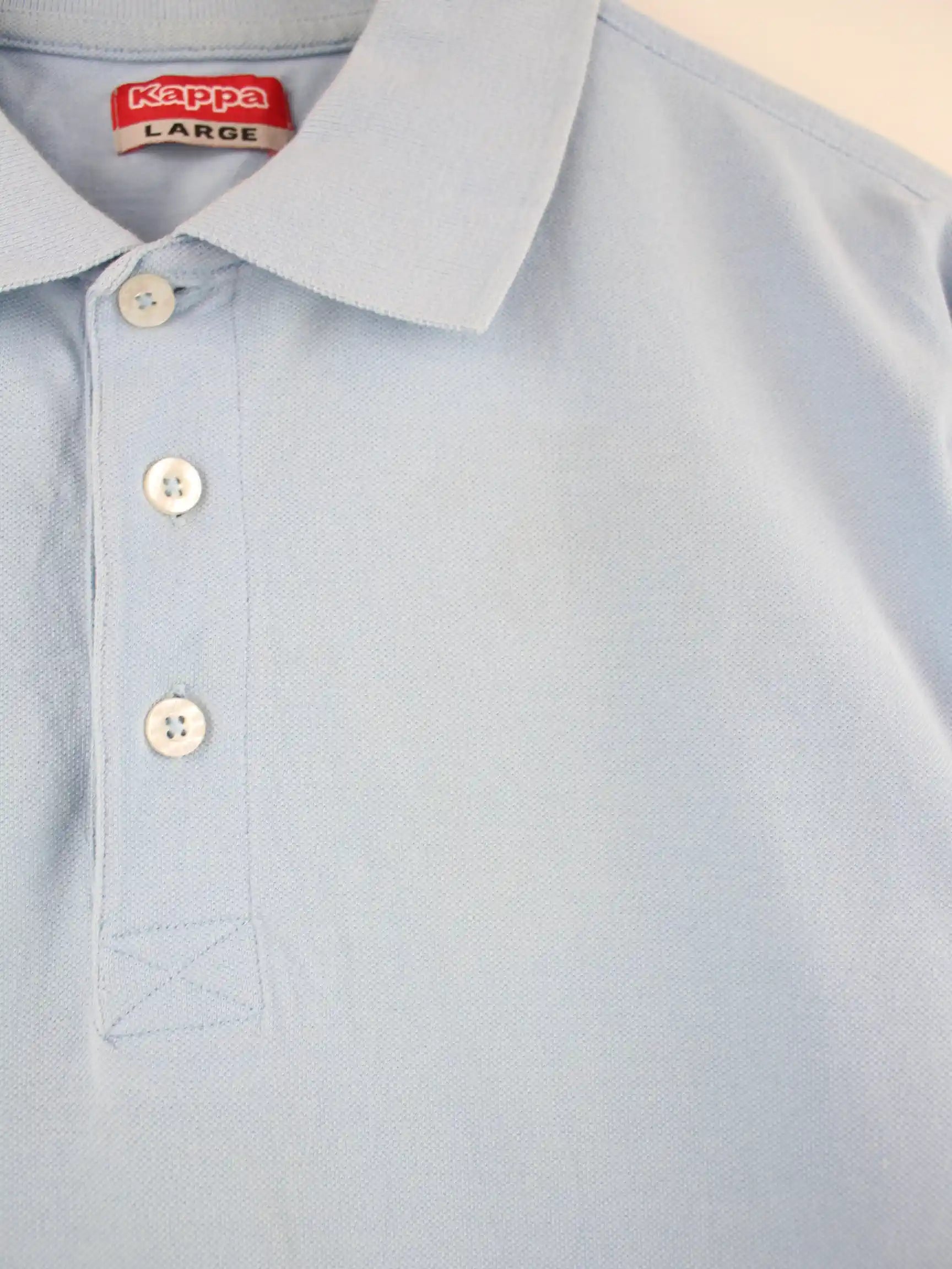 Poloshirt der Marke Kappa in Größe L. Es ist aus Baumwolle gefertigt und in Blau in Stock.