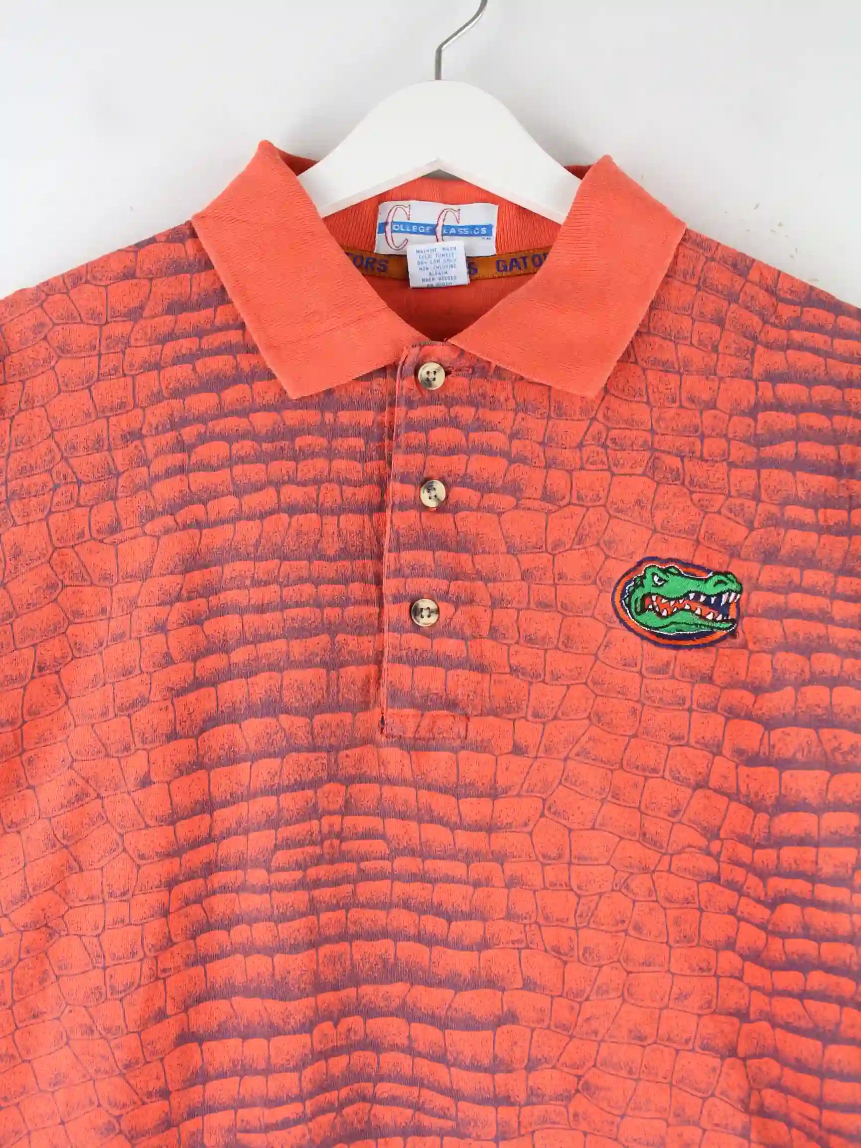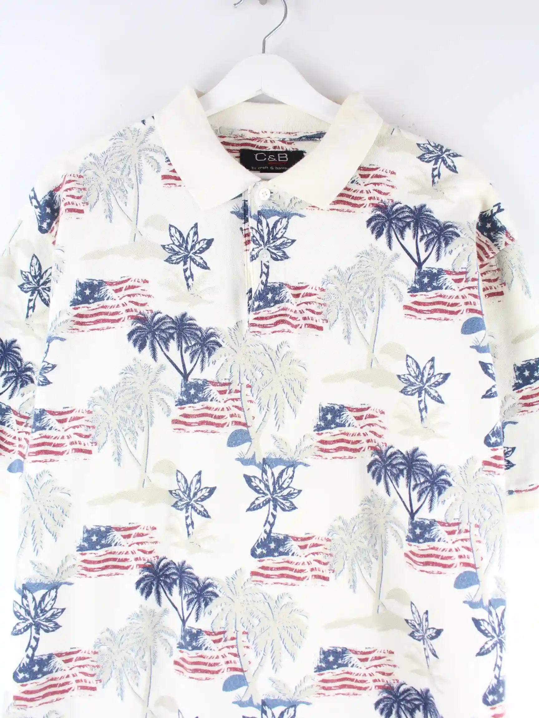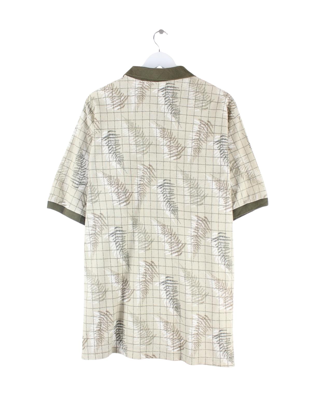 Vintage 90s Striped Fern Pattern Polo Grün L