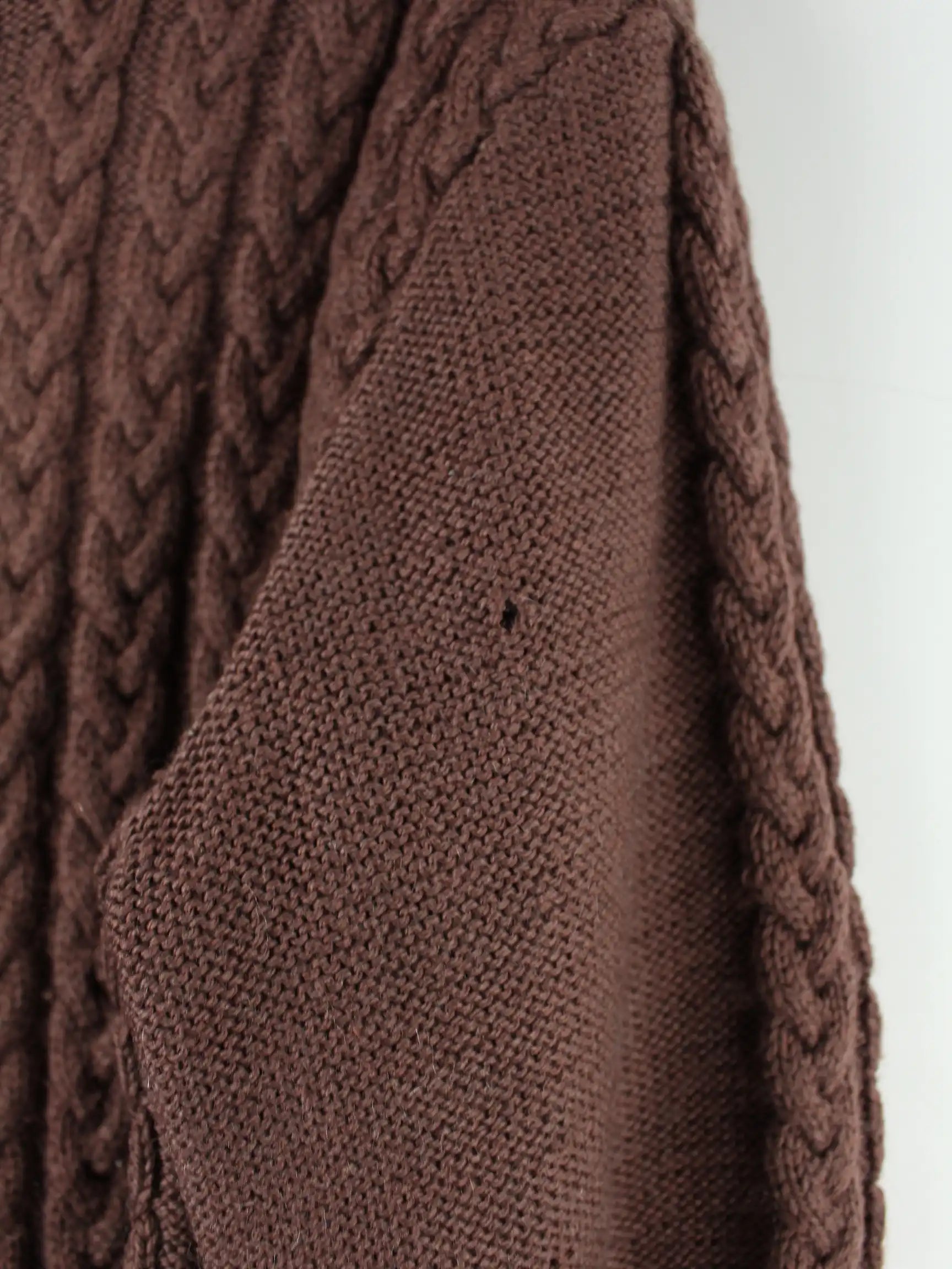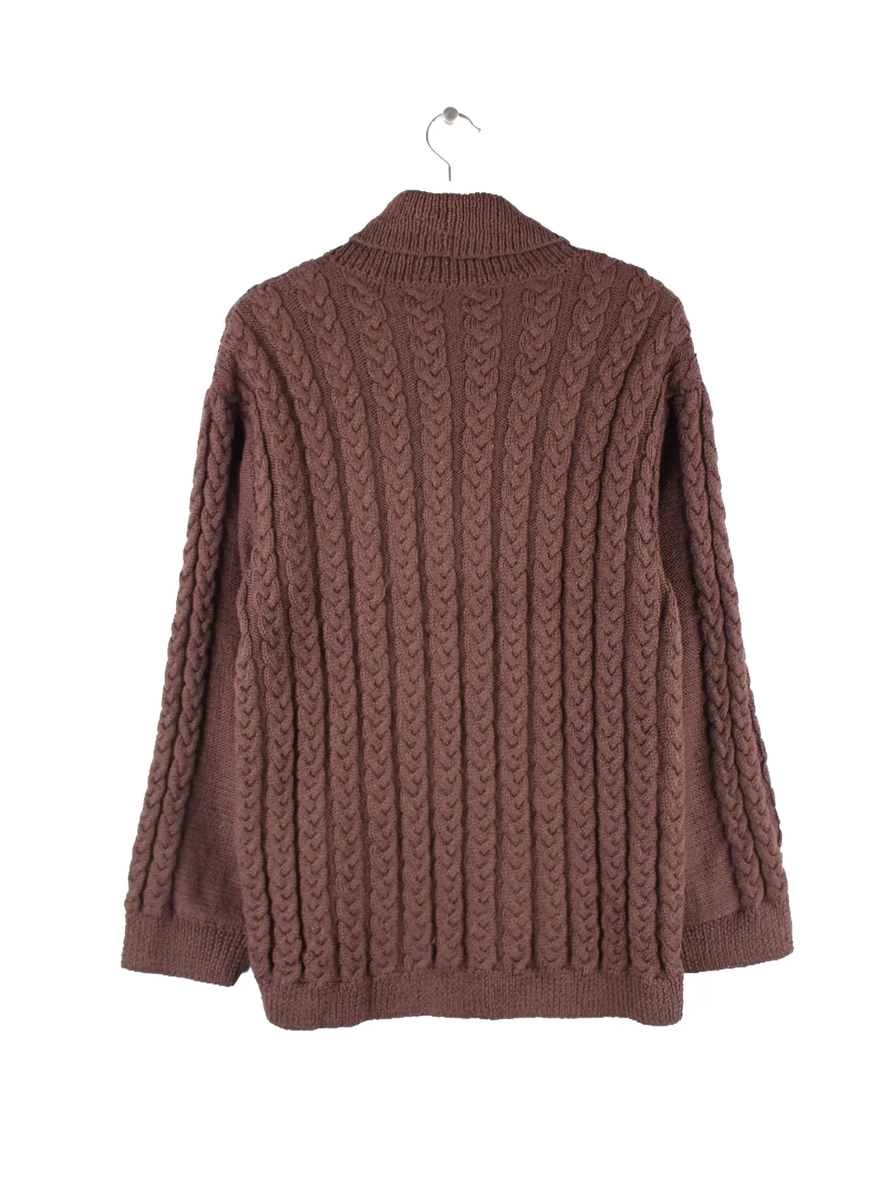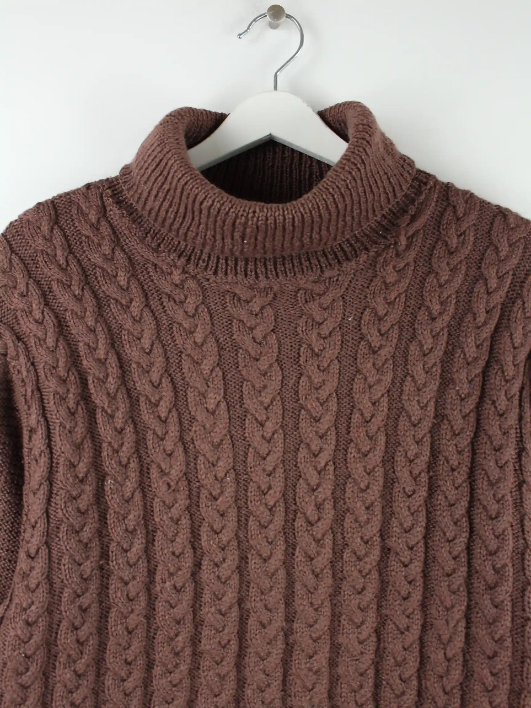 Vintage Damen Cable Knit Rollkragen Pullover Braun XL
