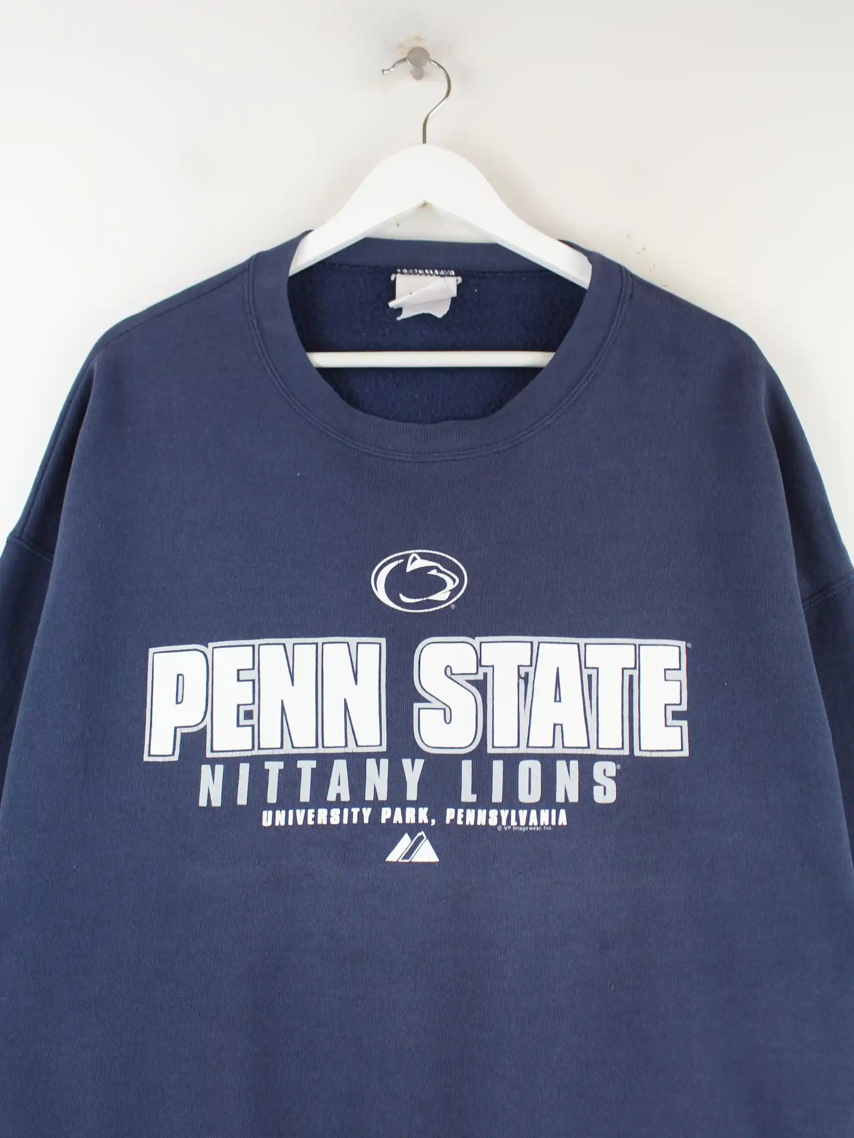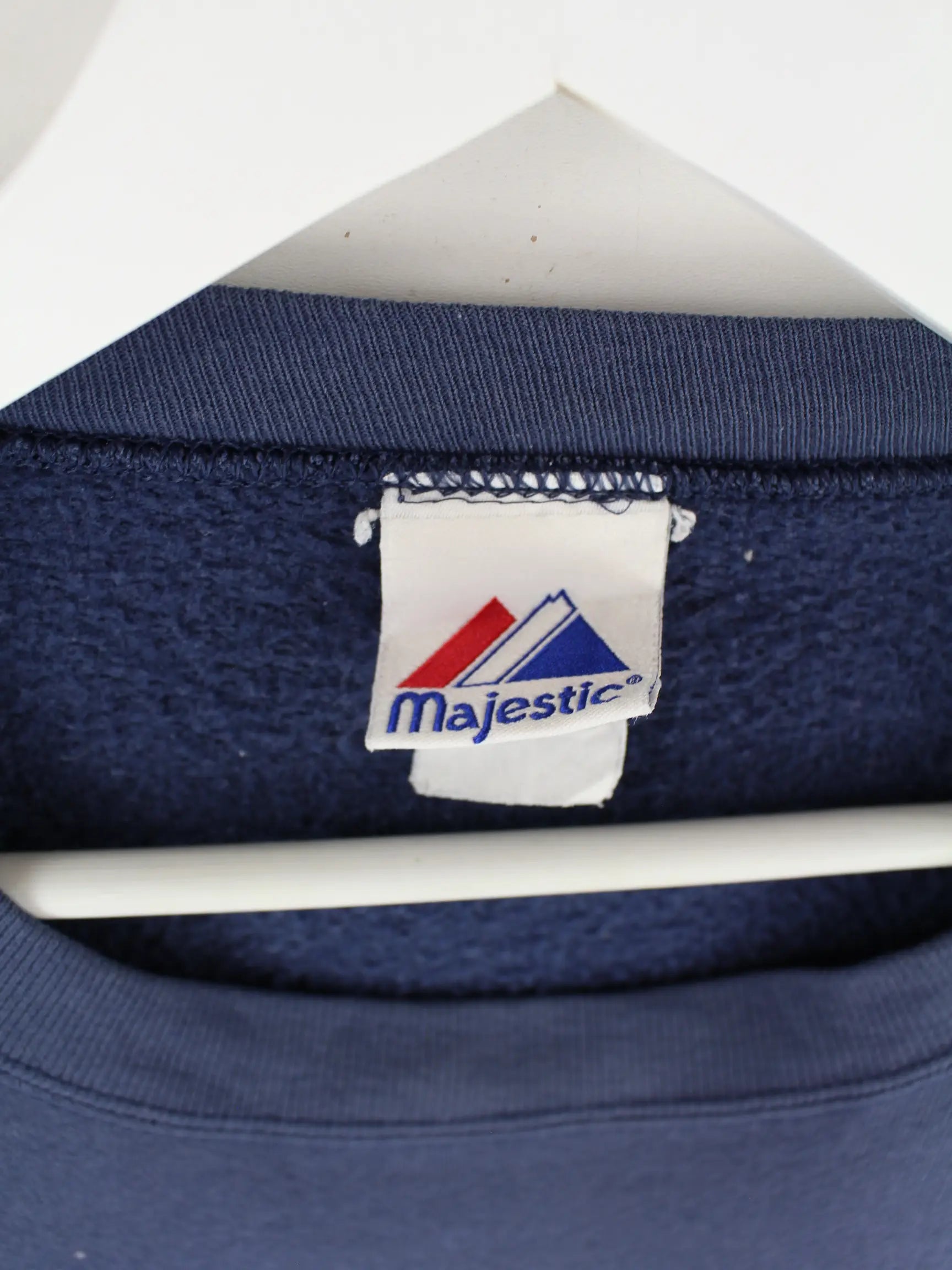 Blauer Sweater aus dem Hause Majestic in Größe XXL. Er ist aus einer Baumwollmischung angefertigt und in gutem Zustand zu haben. Mit chiquem State Print.