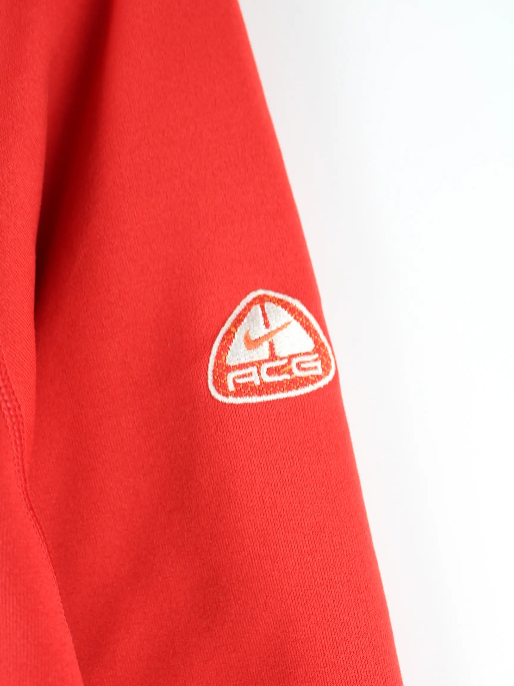 Roter Sweater mit kurzem Reißverschluß der Brand Nike in Größe M. Er ist aus Synthetik produziert und in gutem Zustand in Stock.