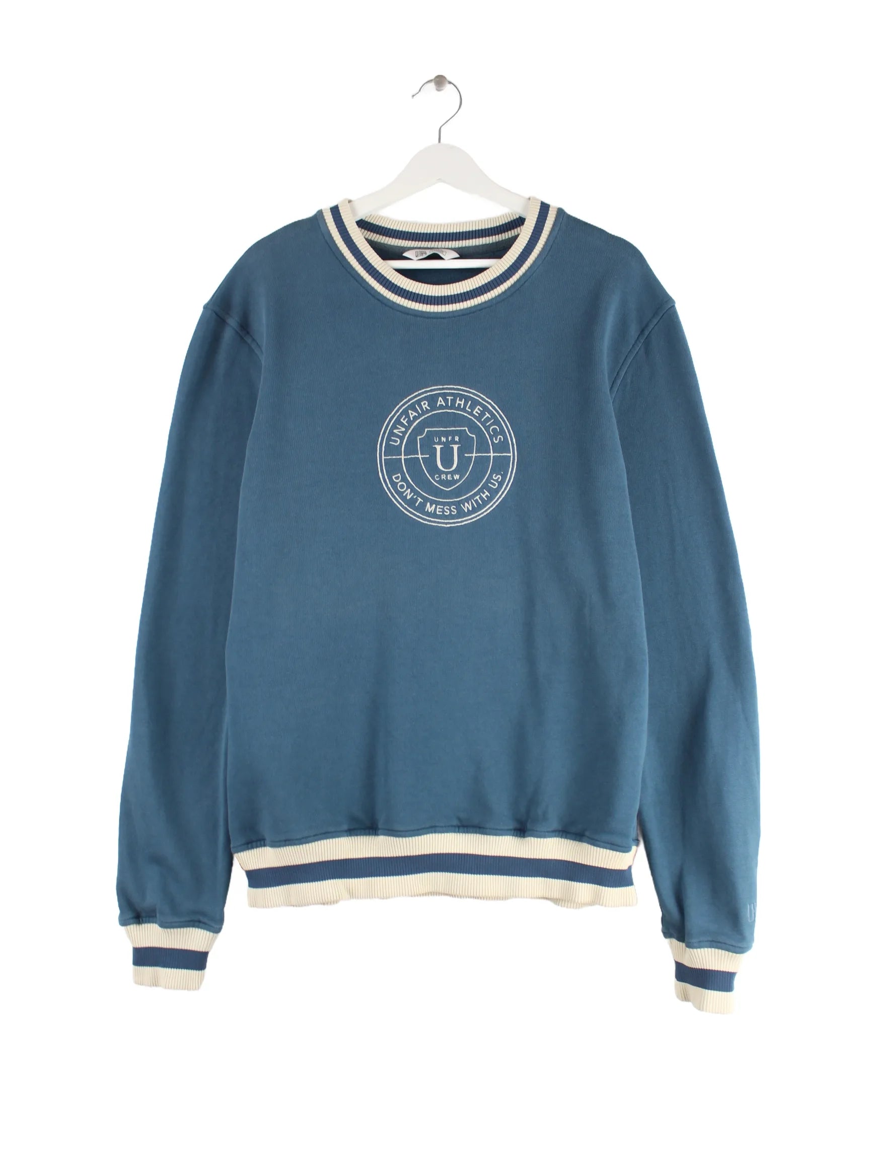 Sweater vom Label Unfair Athletics in Größe L. Er ist aus einer Baumwollmischung gemacht und in Blau auf Lager.
