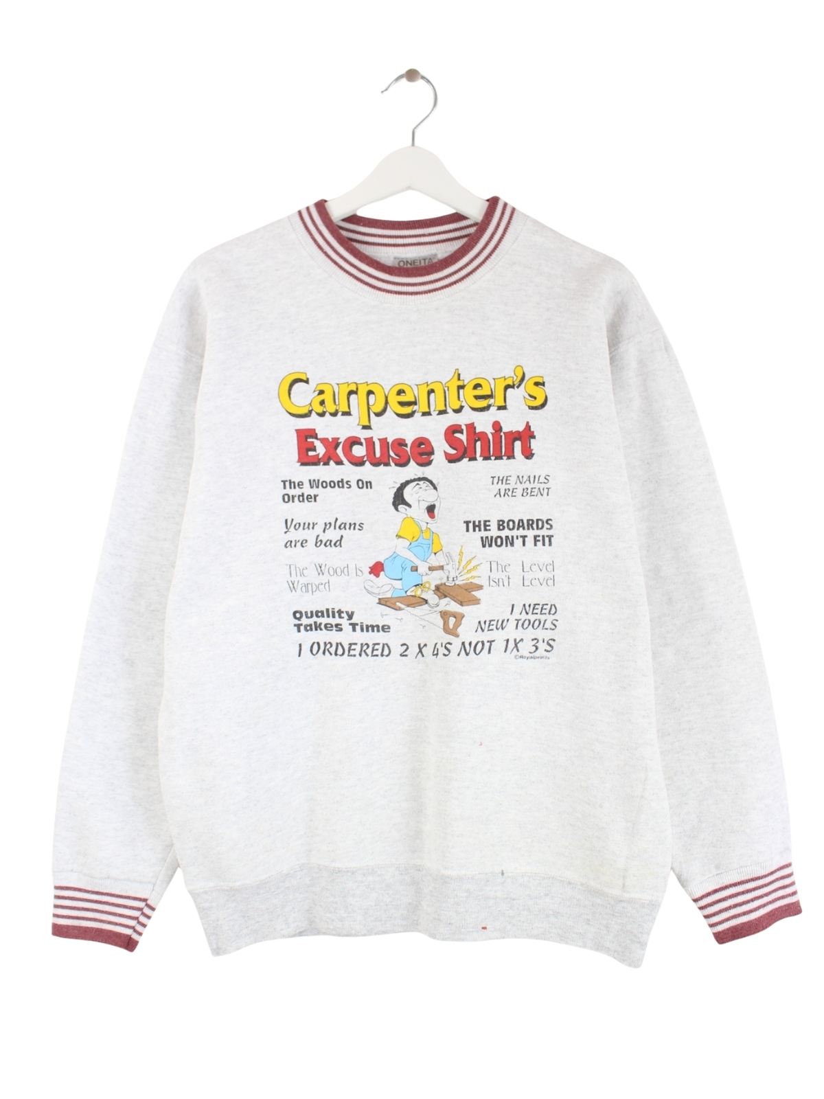 Oneita 90s Vintage Funny Carpenter Print Sweater Grau M