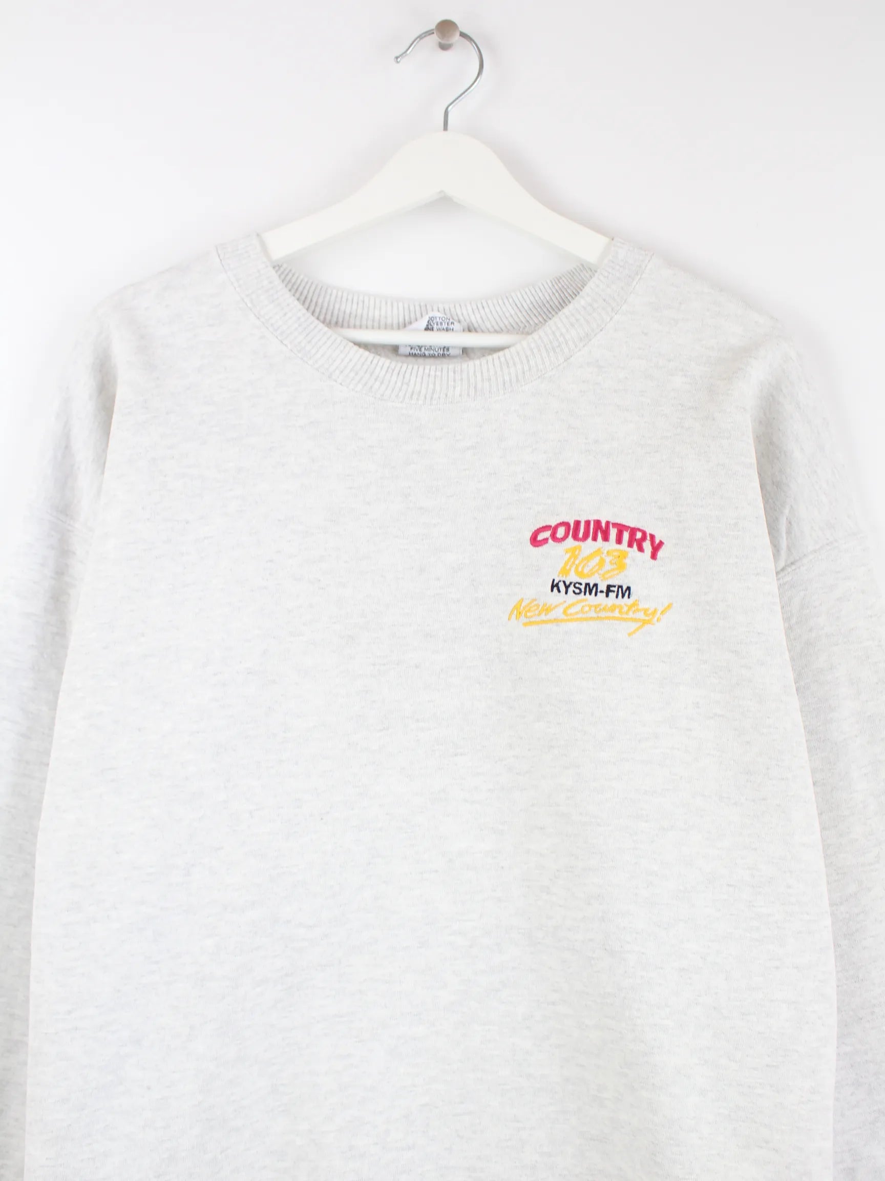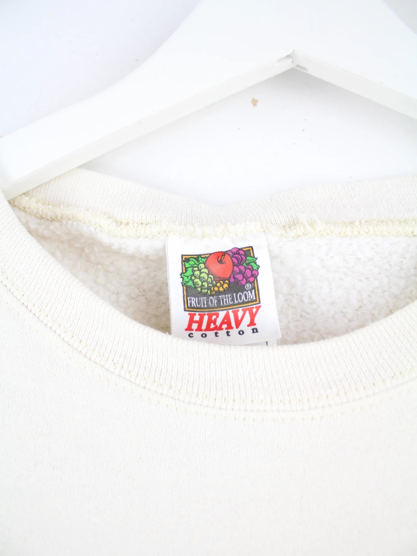 Fruit of the Loom 90s Vintage Sidetrack Print Sweater Beige XL