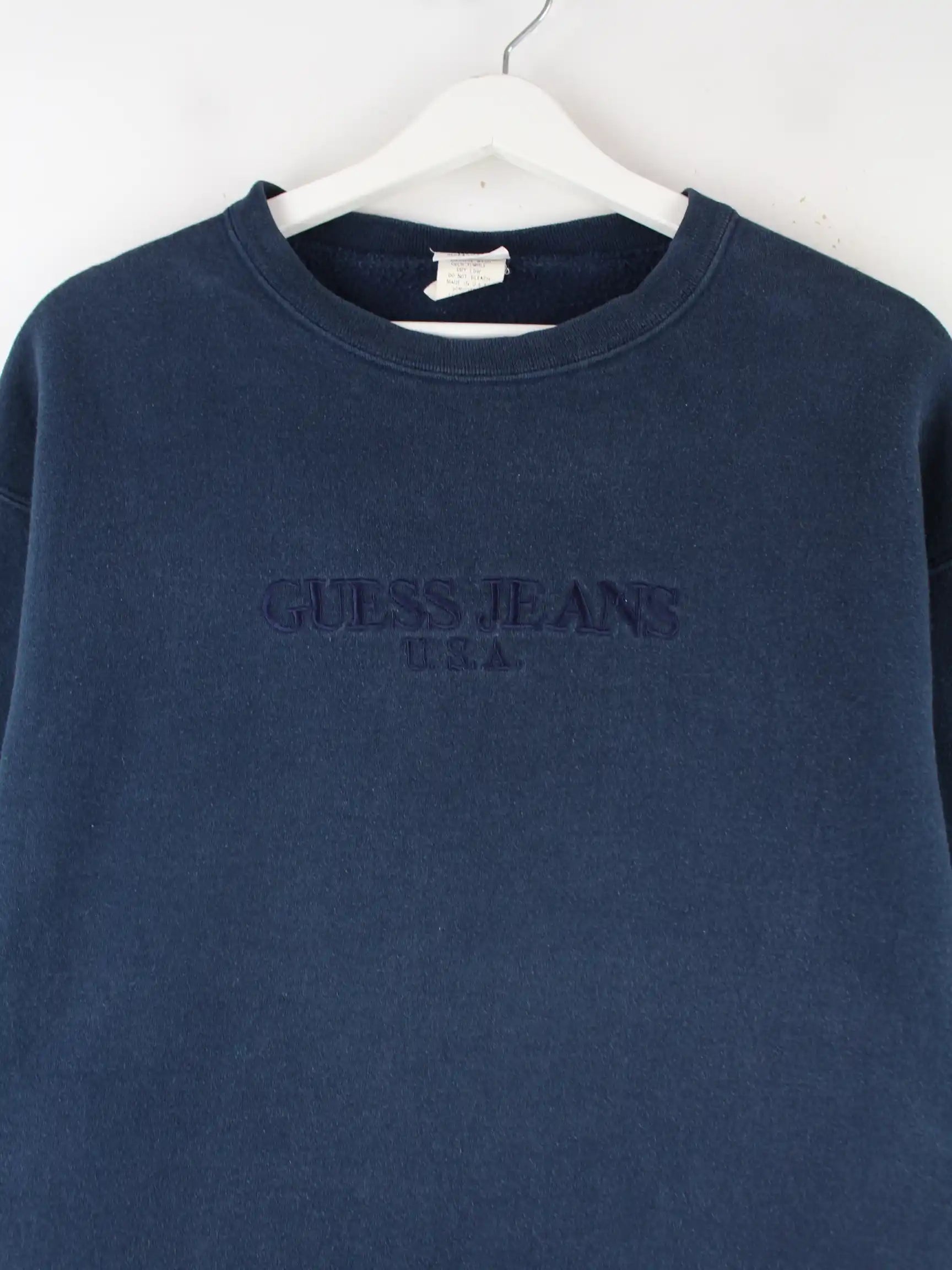 Guess Damen 90s Vintage Big Logo Sweater Blau M