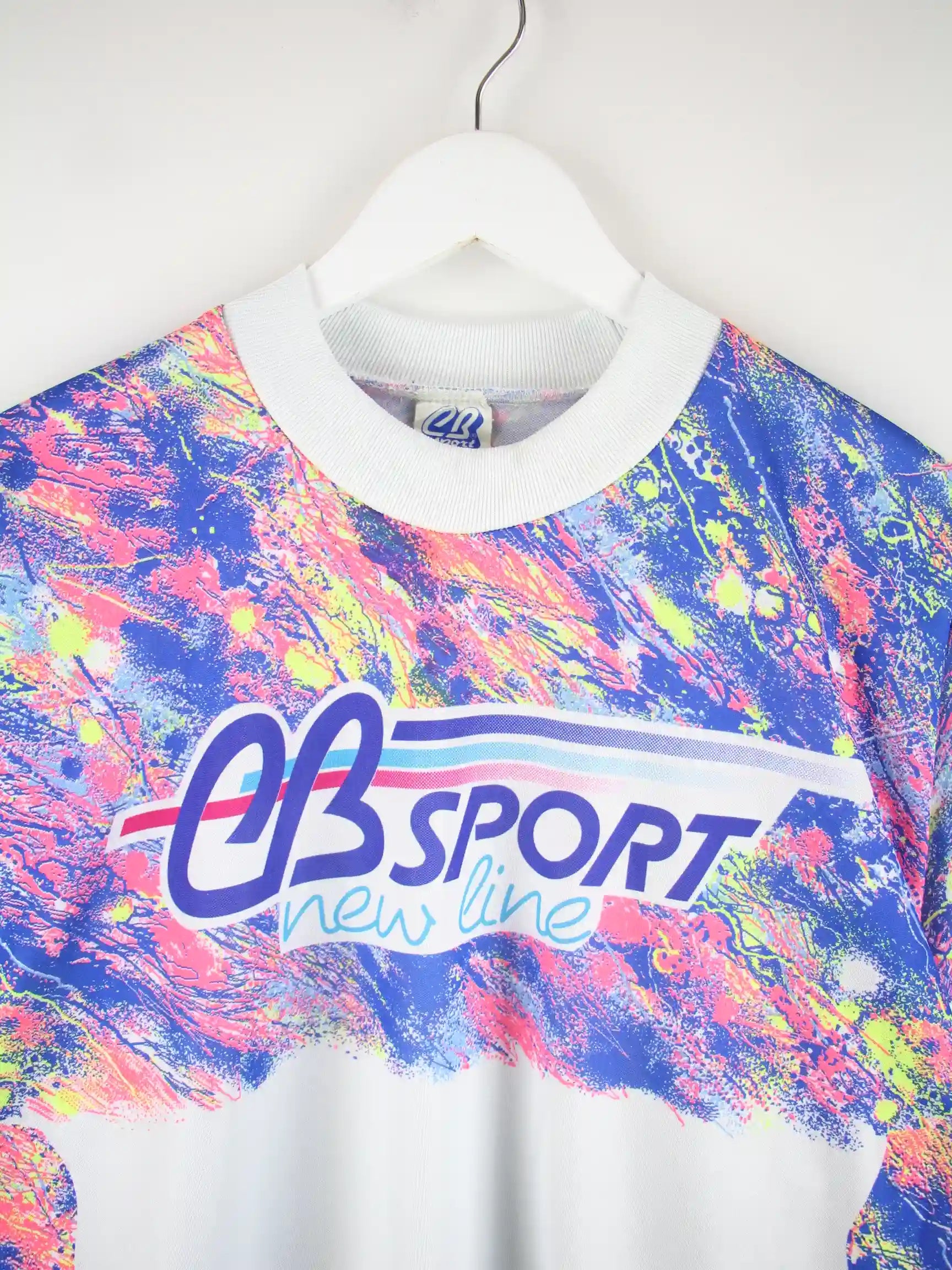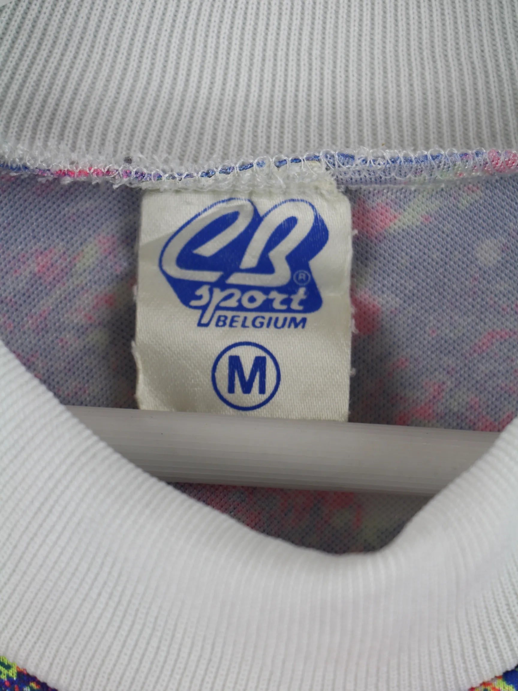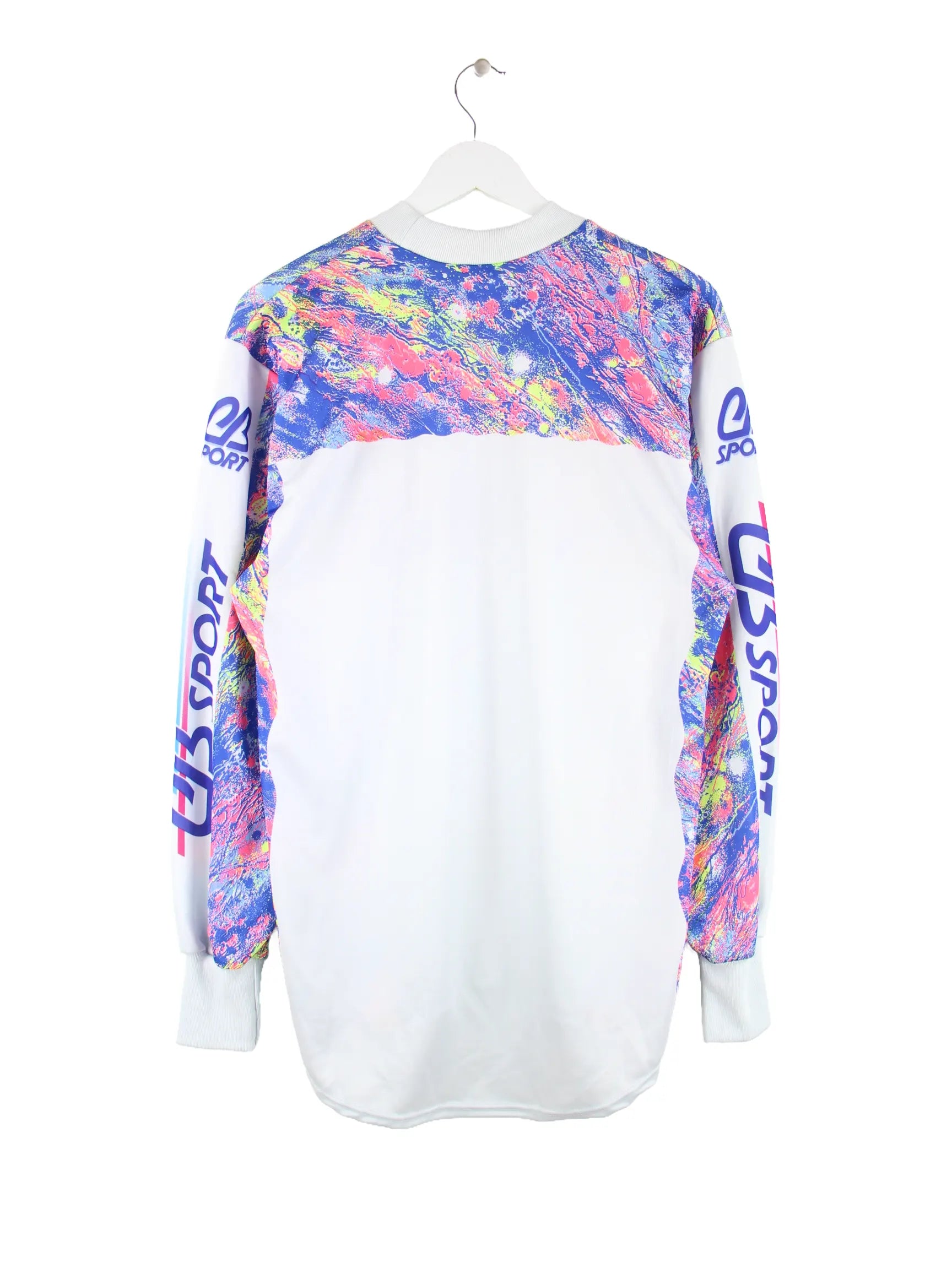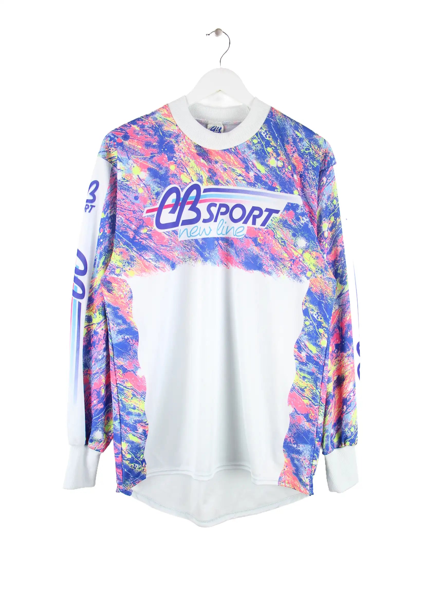 Vintage 80s Crazy Pattern Biker Langarm Trikot Weiß M