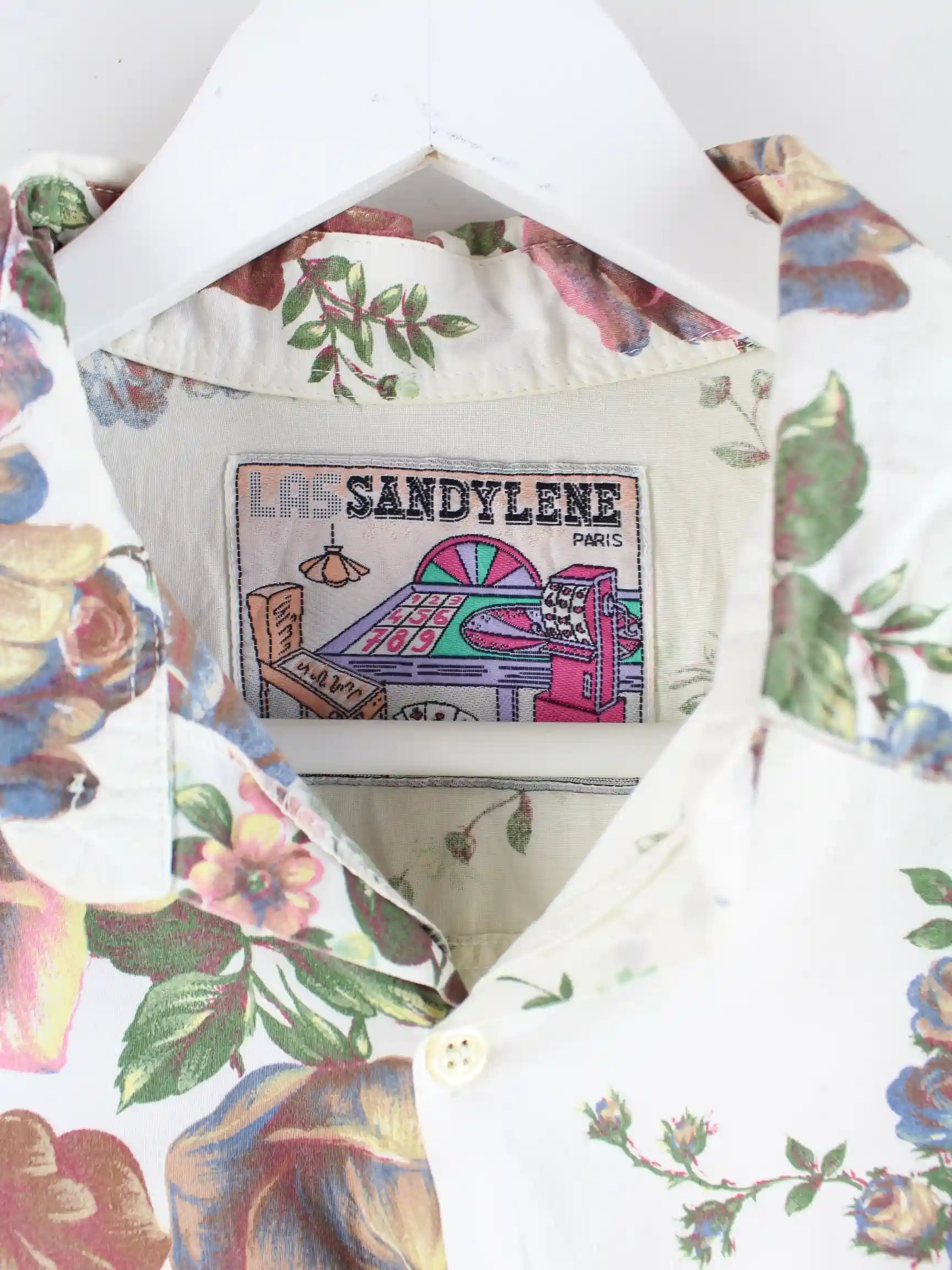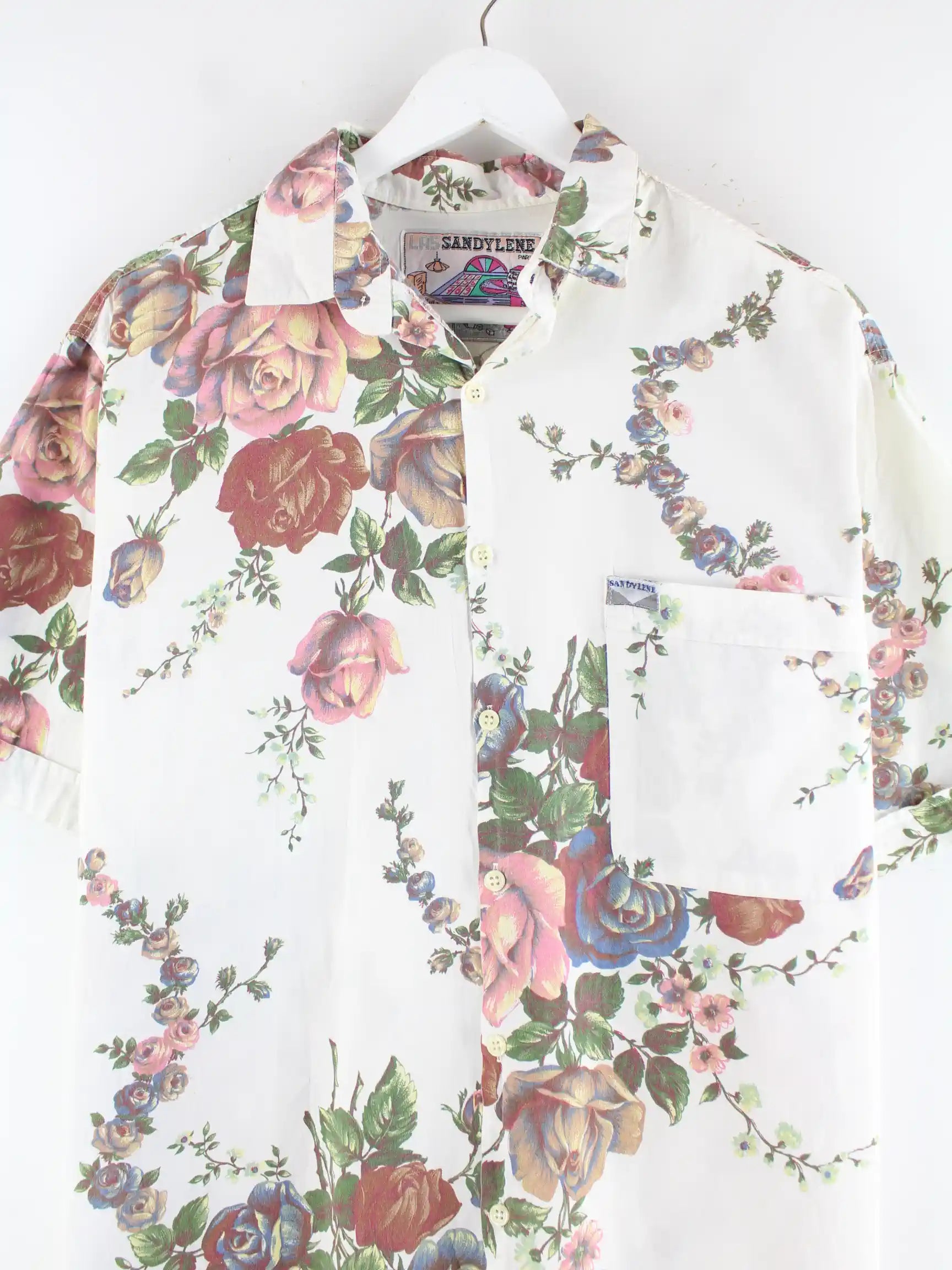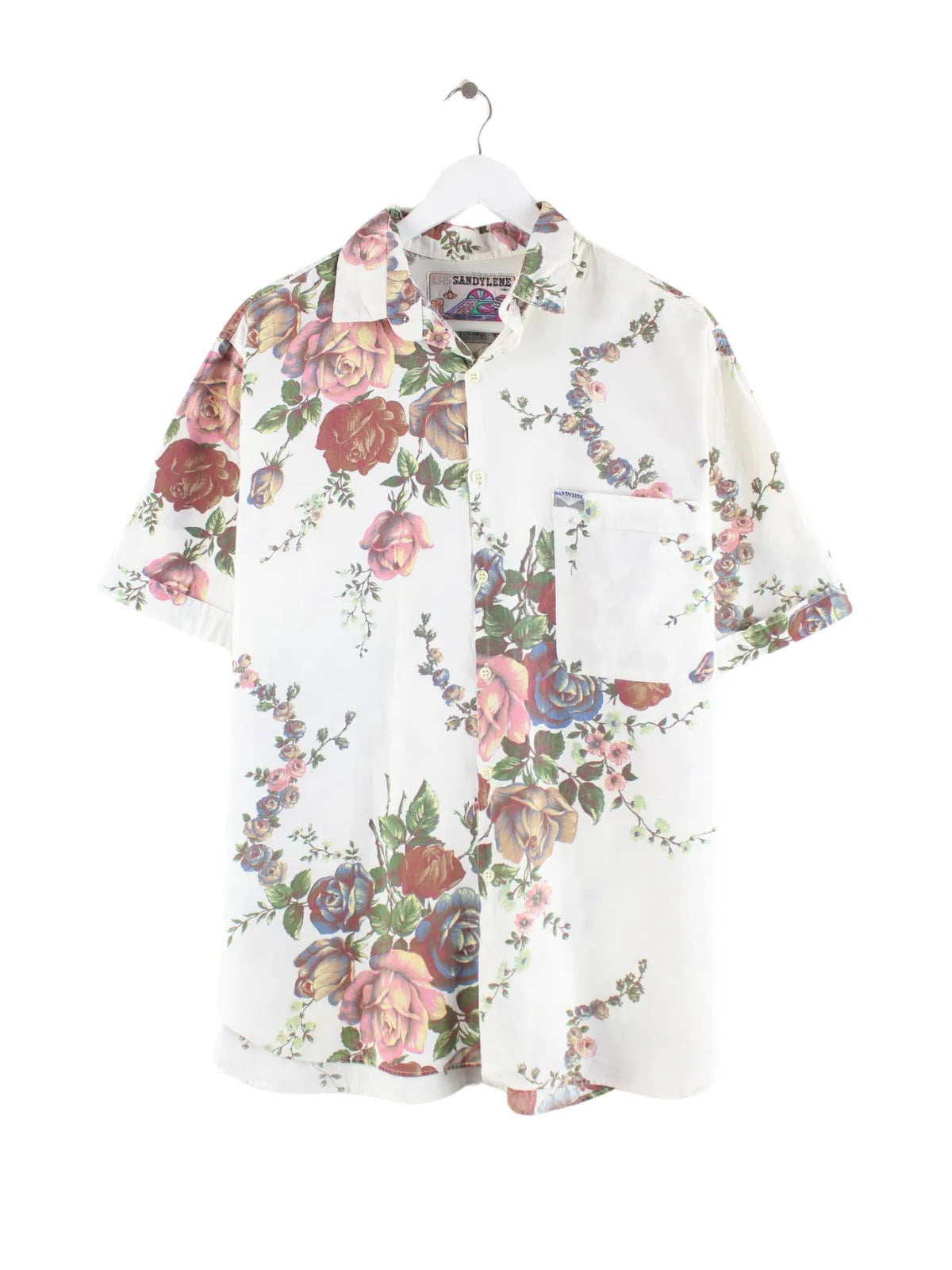Vintage 80s Las Sandylene Hawaii Hemd Weiß L