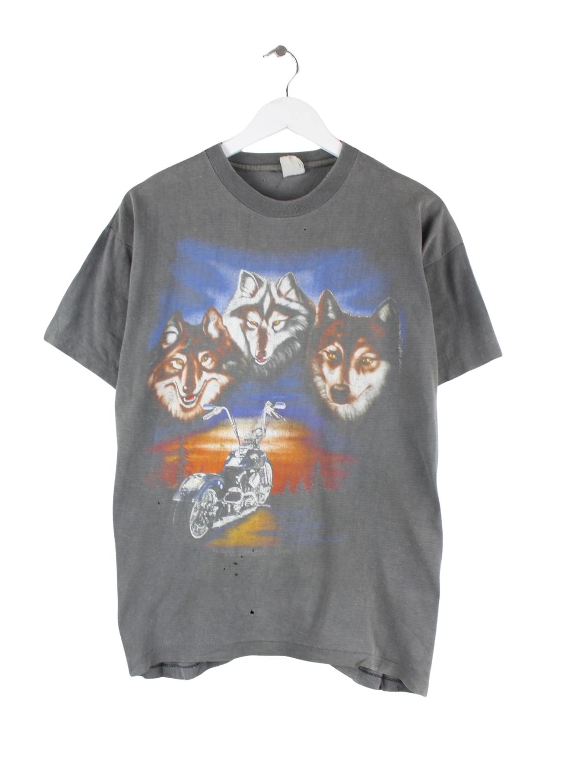 Vintage 80s Wolves Print Single Stitch T-Shirt Grau XL