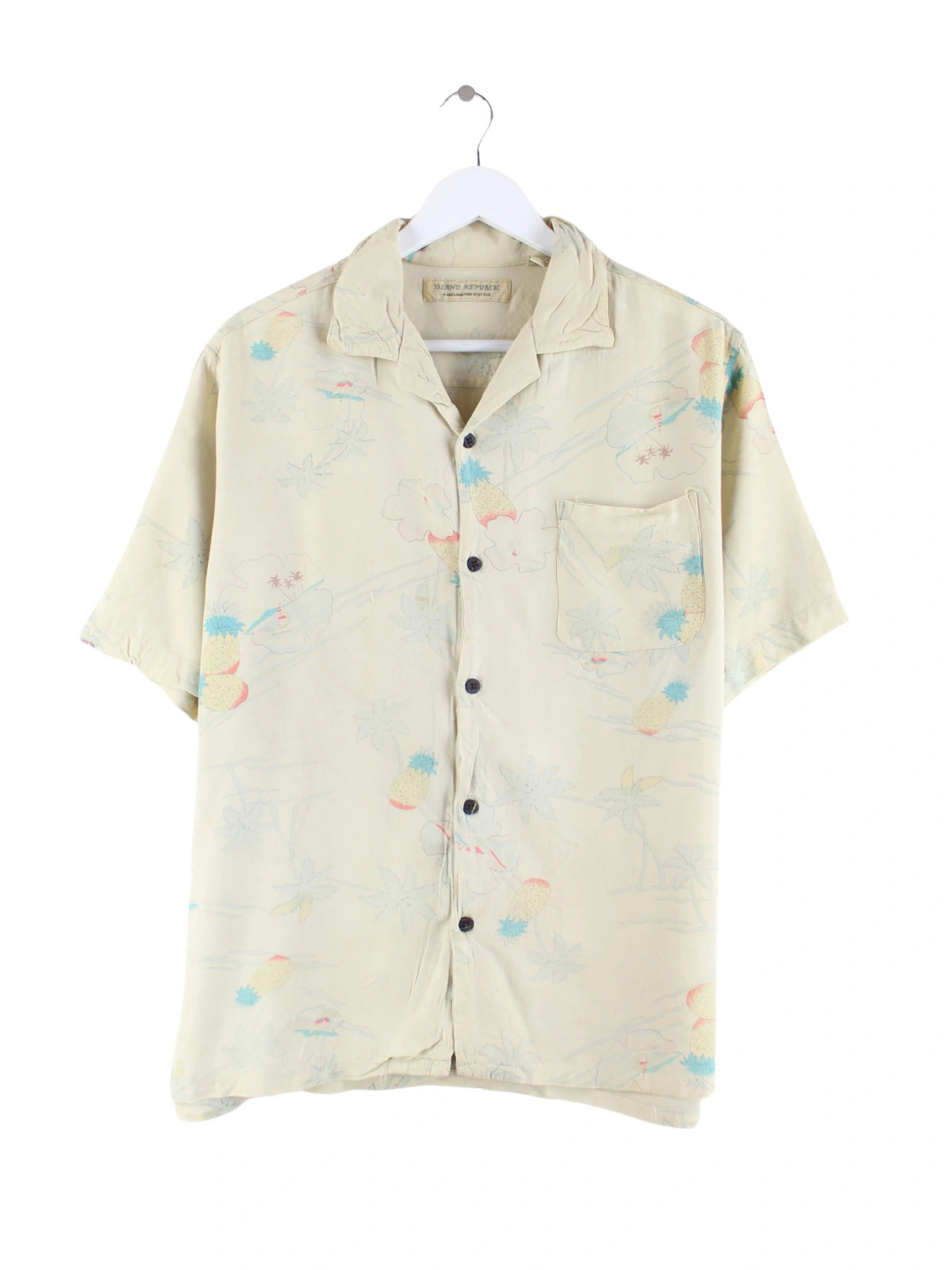 Vintage 90s 100% Seide Hawaii Hemd Beige L