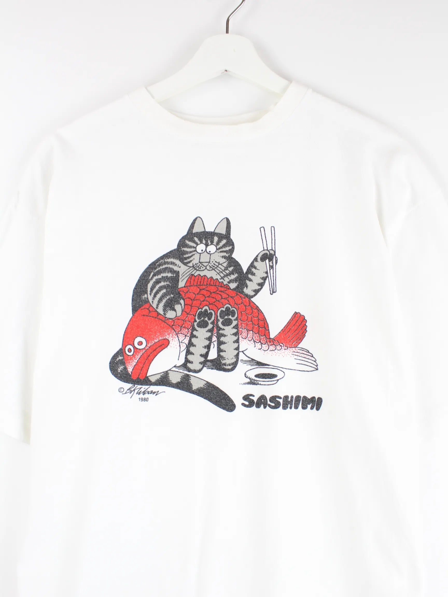 Vintage 80s Vintage Sashimi Print Single Stitch T-Shirt Weiß XL
