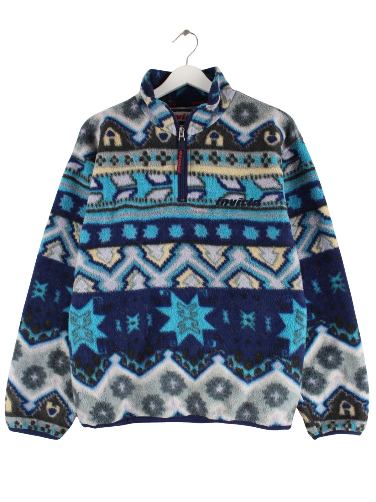 Vintage 90s Crazy Pattern Fleece Sweater Blau L