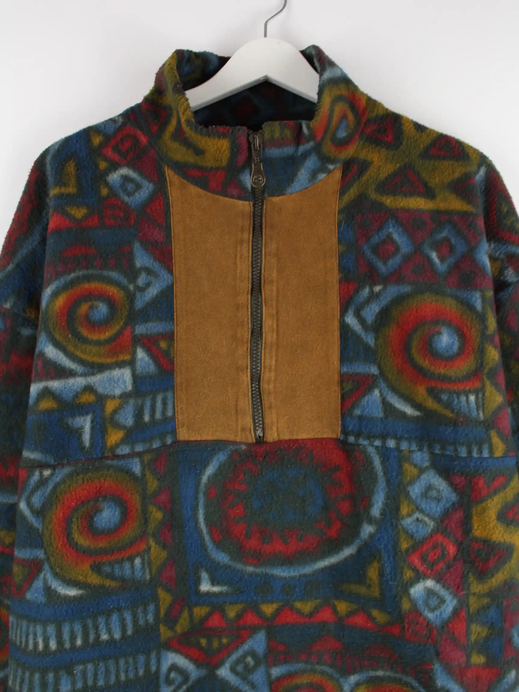 Vintage 90s Crazy Pattern Half Zip Fleece Jacke Blau L