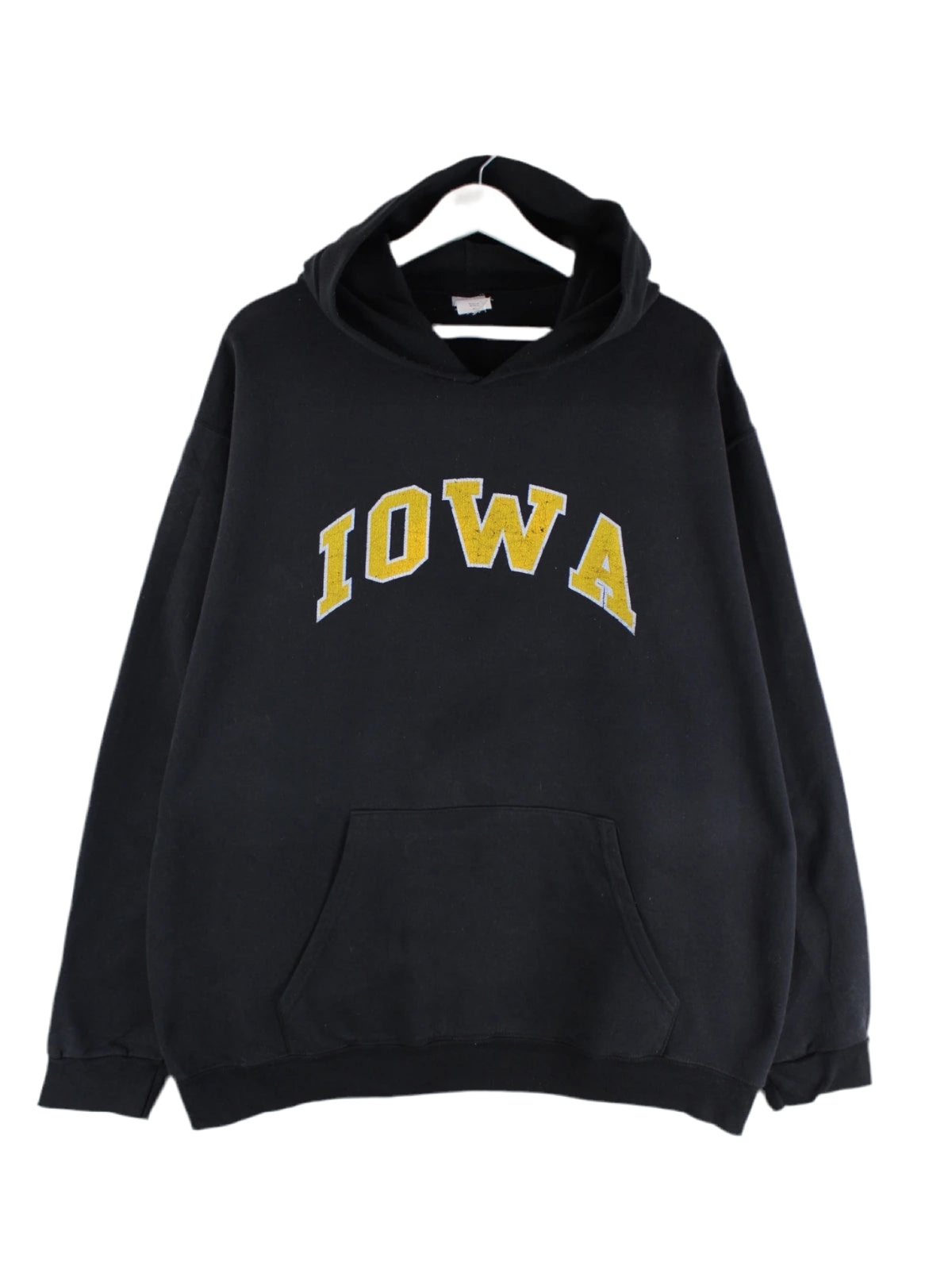 Vintage 90s IOWA Print Hoodie Schwarz XL