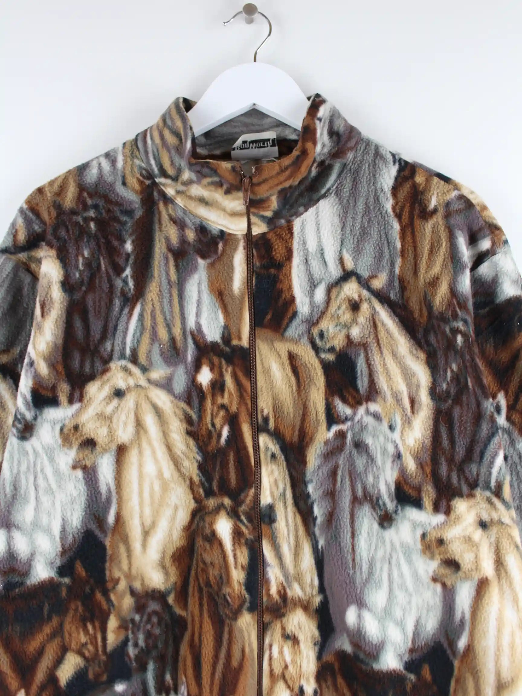 Vintage 90s Horse Pattern Fleecey Jacke Braun S