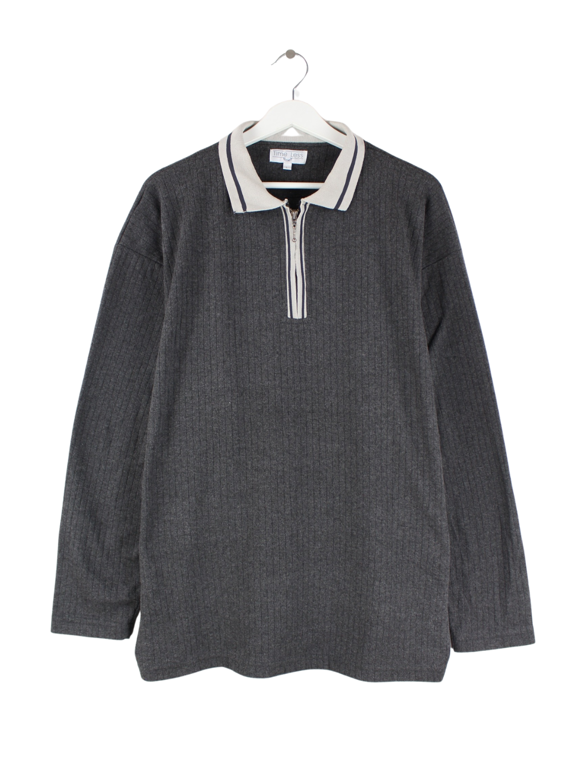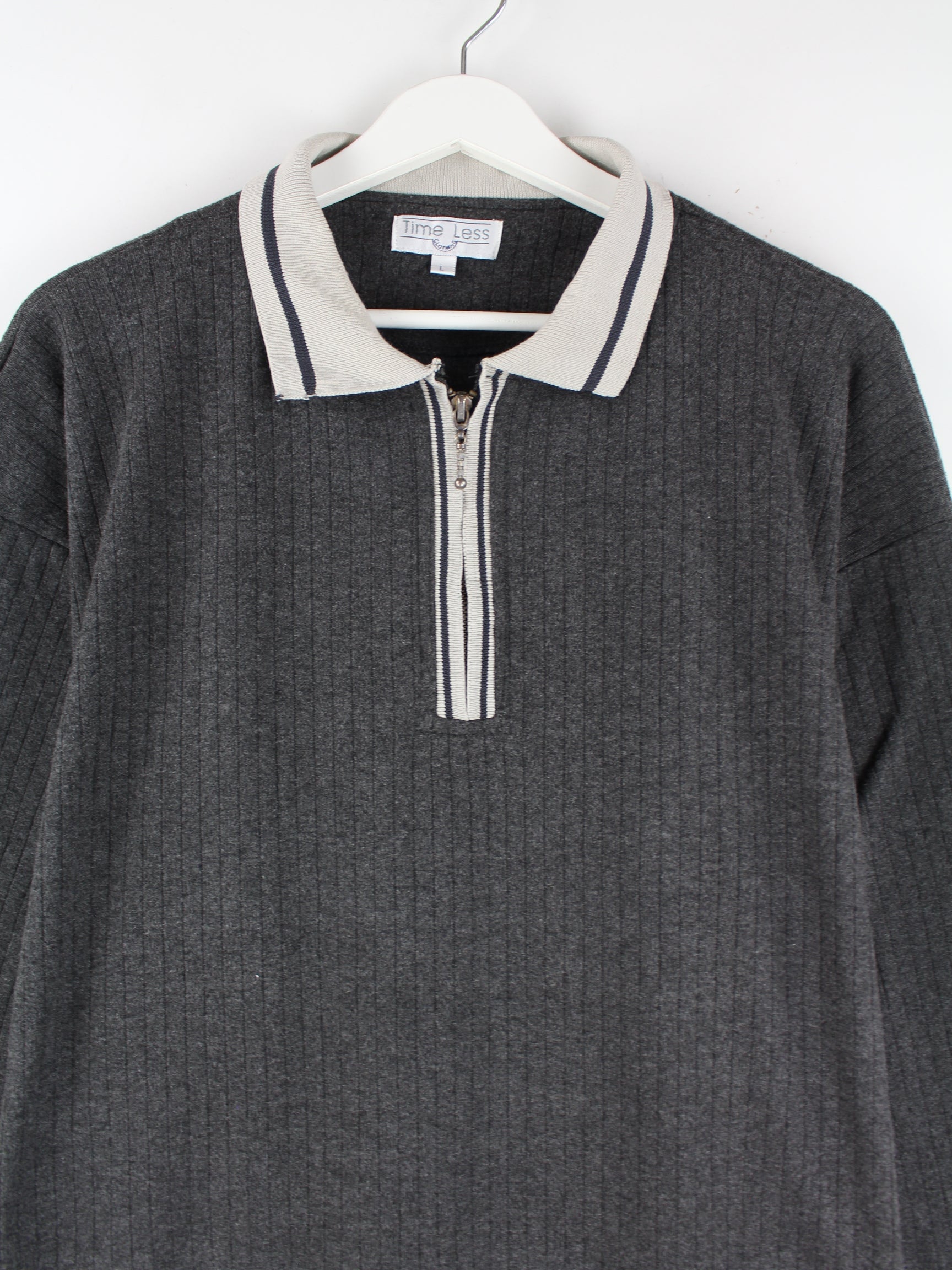 Vintage 90s Ribbed Polo Half Zip Sweater Grau L