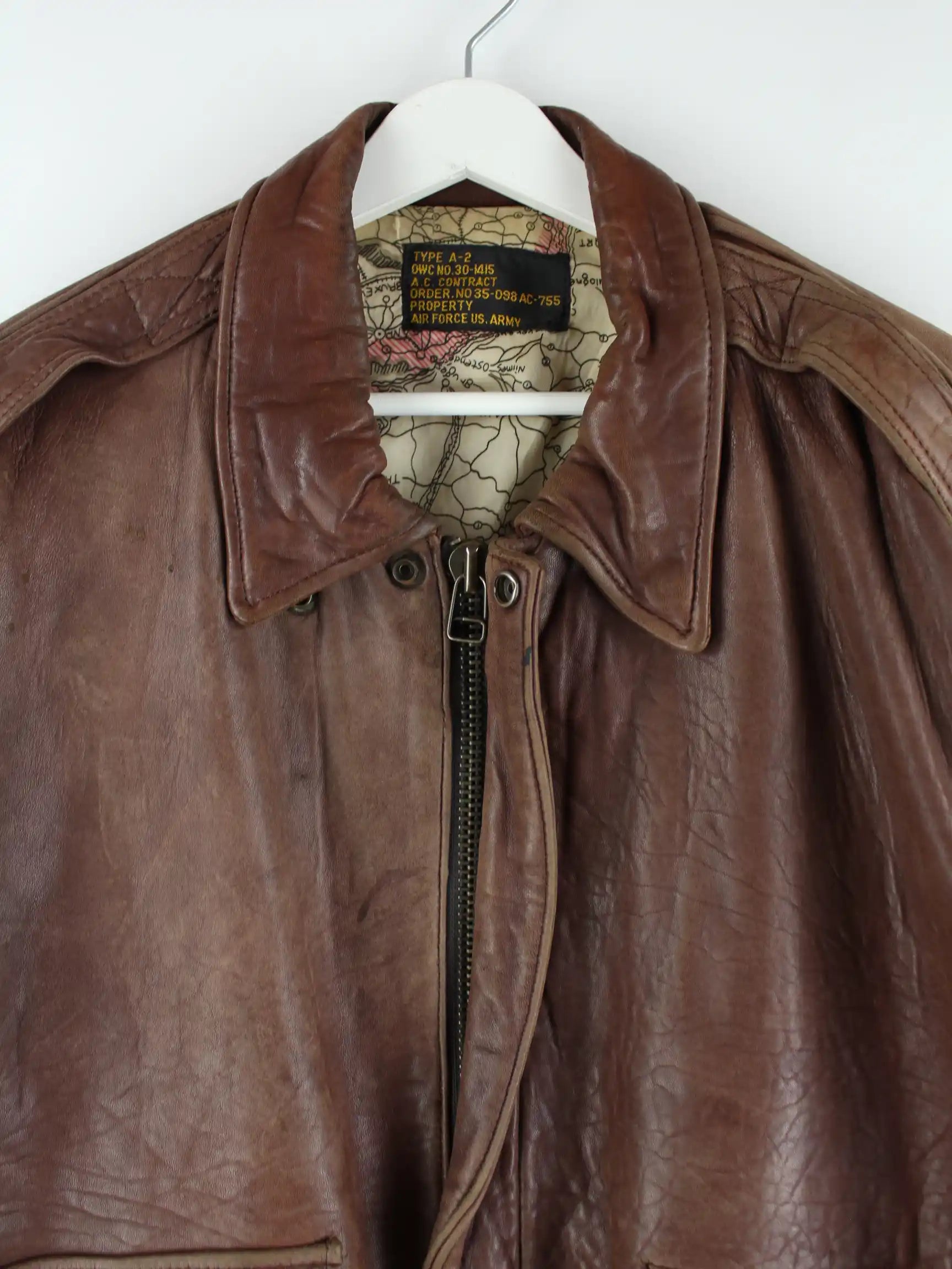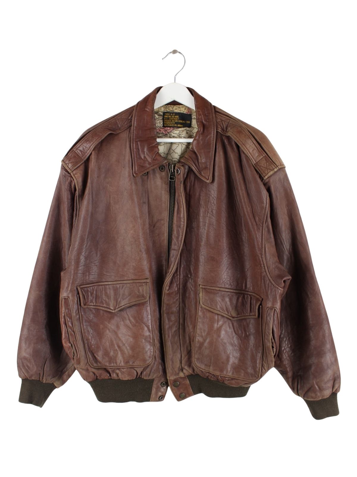 Vintage 90s Type A-2 US Army Air Force Leder Jacke Braun M