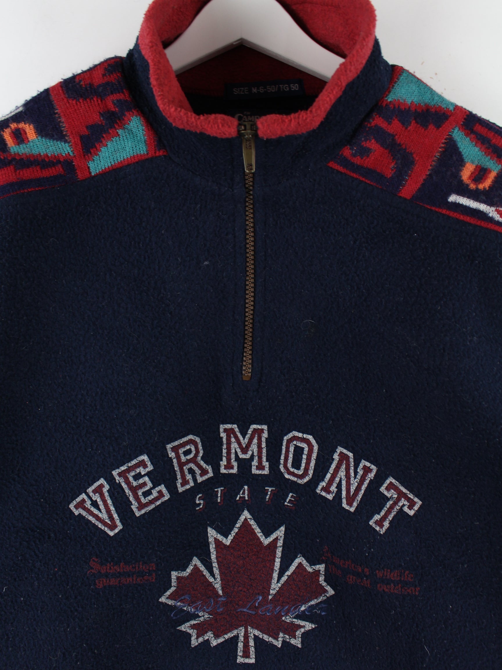 Vintage 90s Vermont State Half Zip Fleece Sweater Blau M