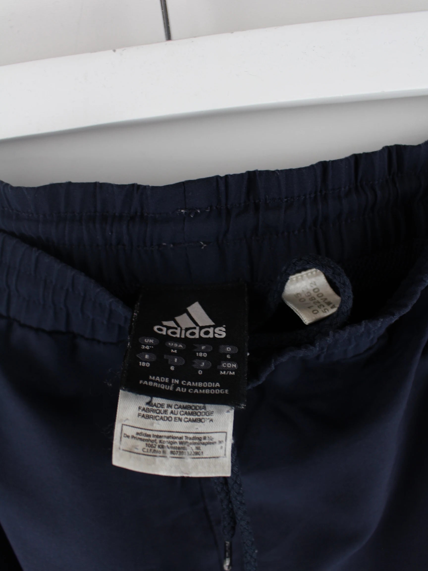 Blaue Track Pants vom Brand Adidas in Größe L. Sie sind aus Synthetik gemacht und in sehr gutem Zustand bei uns zu bekommen.