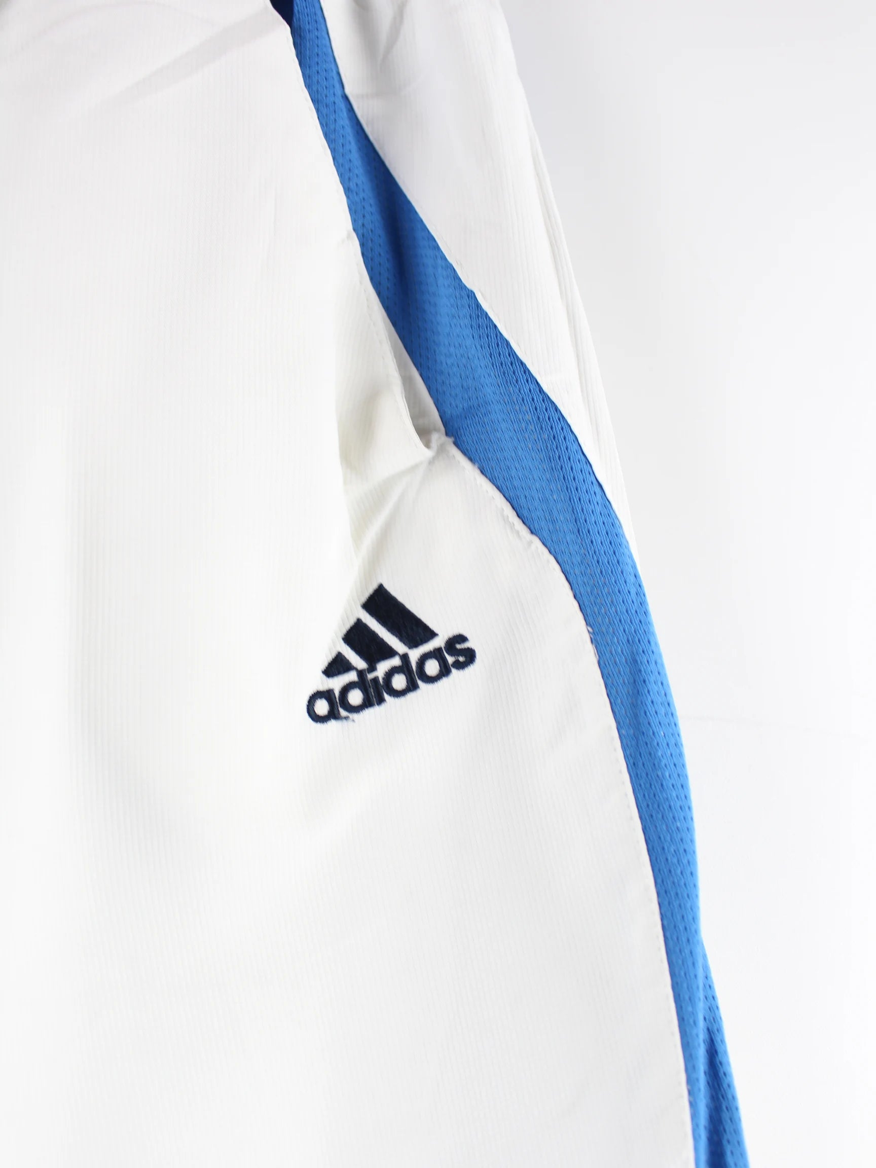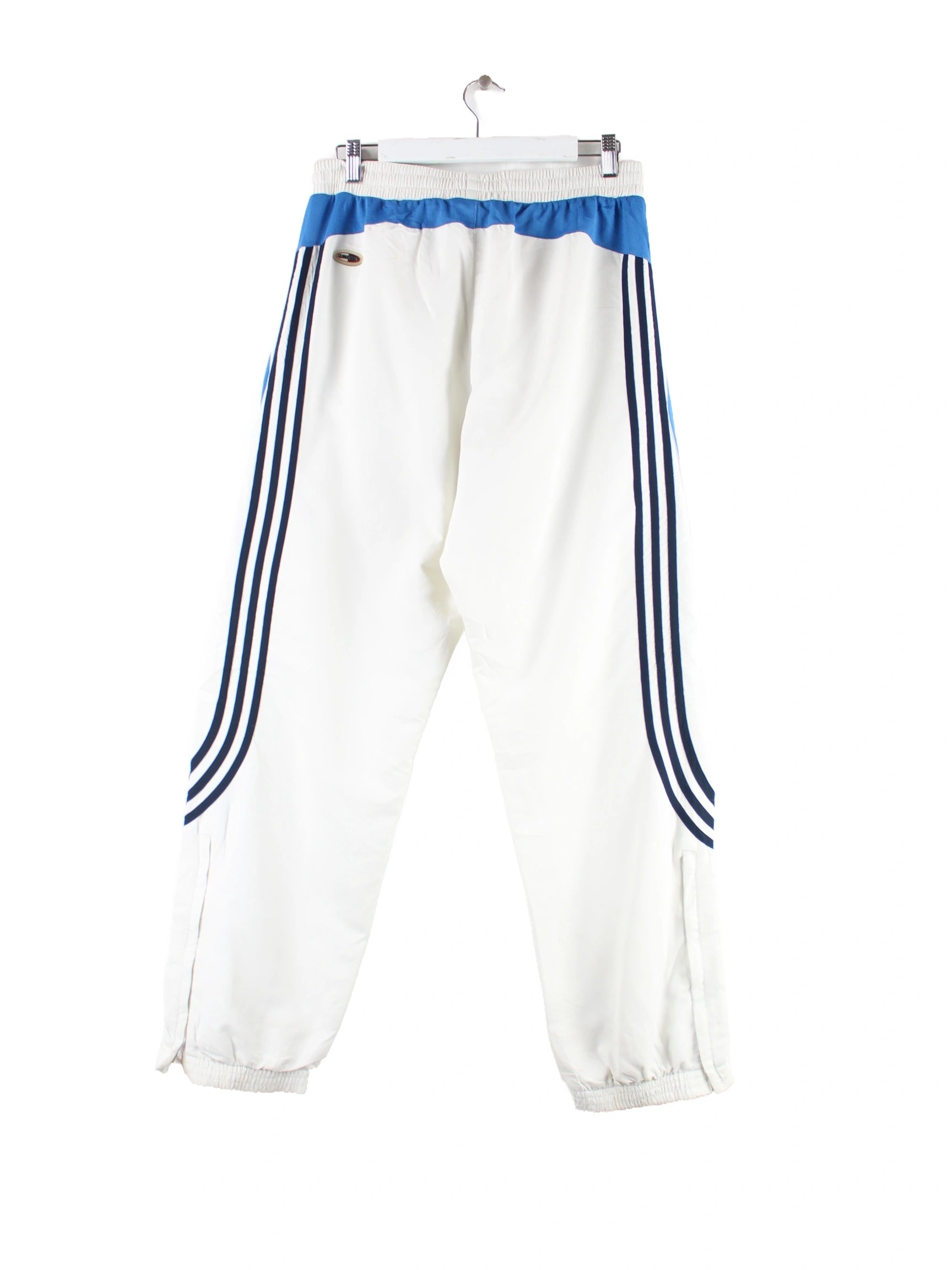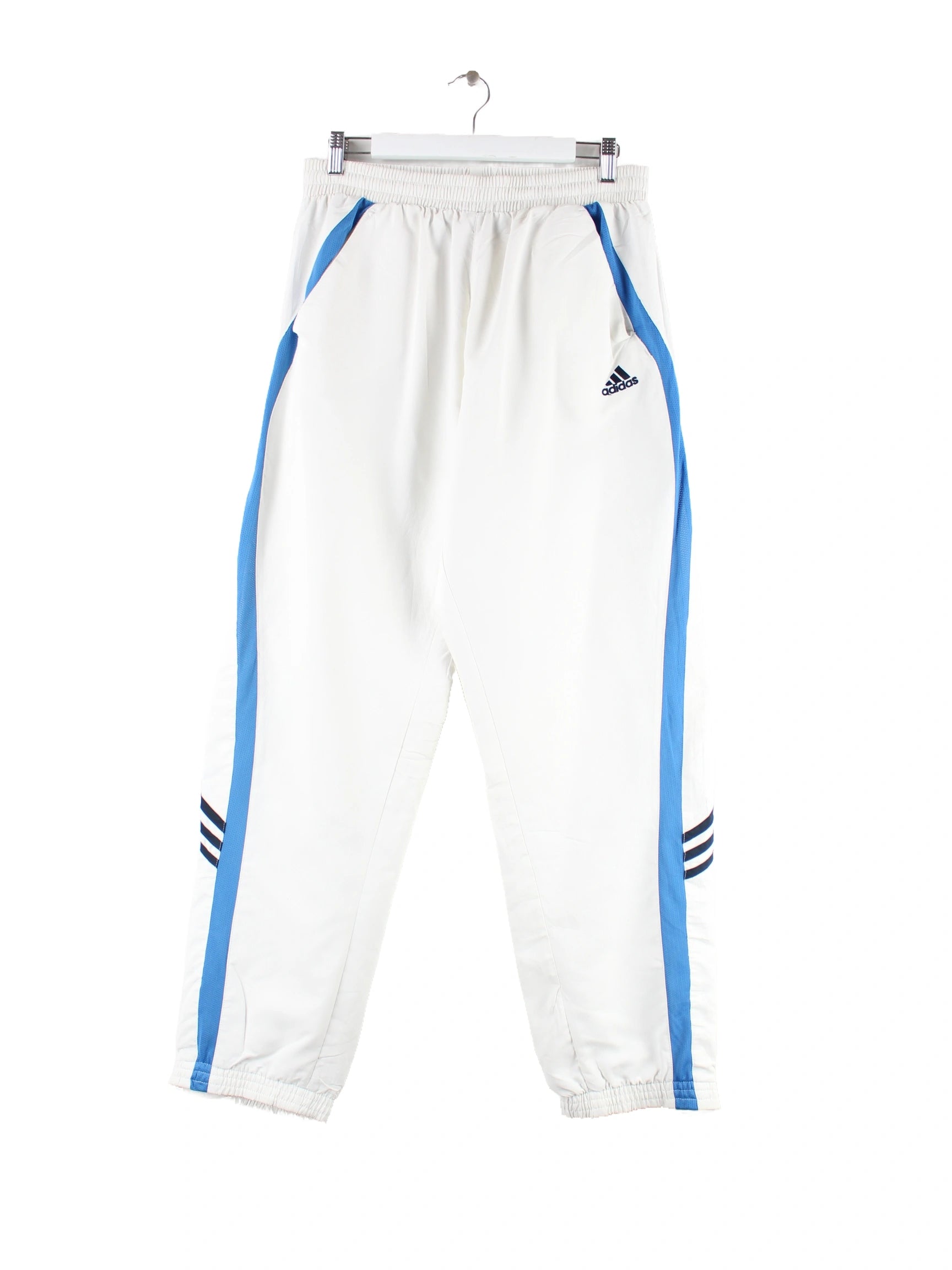 Weiße Track Pants der Marke Adidas in Größe L. Sie sind aus Synthetik hergestellt und in sehr gutem Zustand auf Lager.