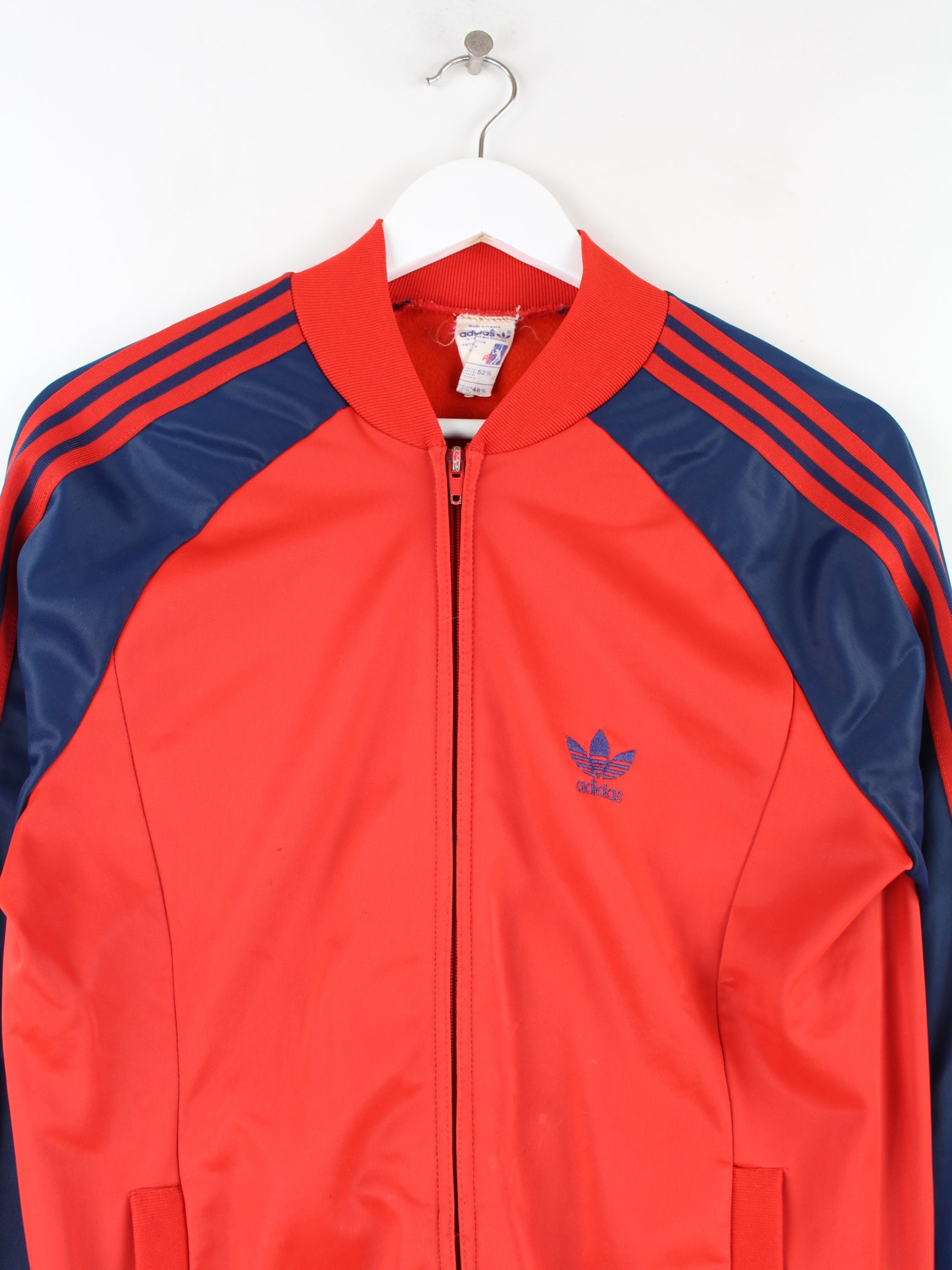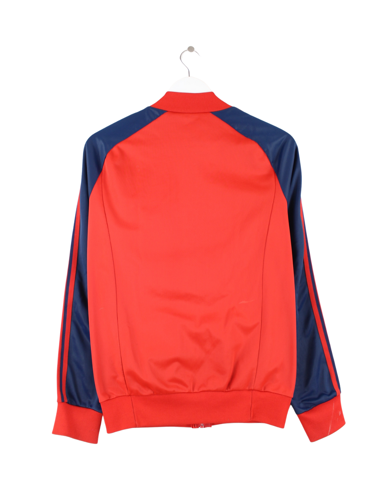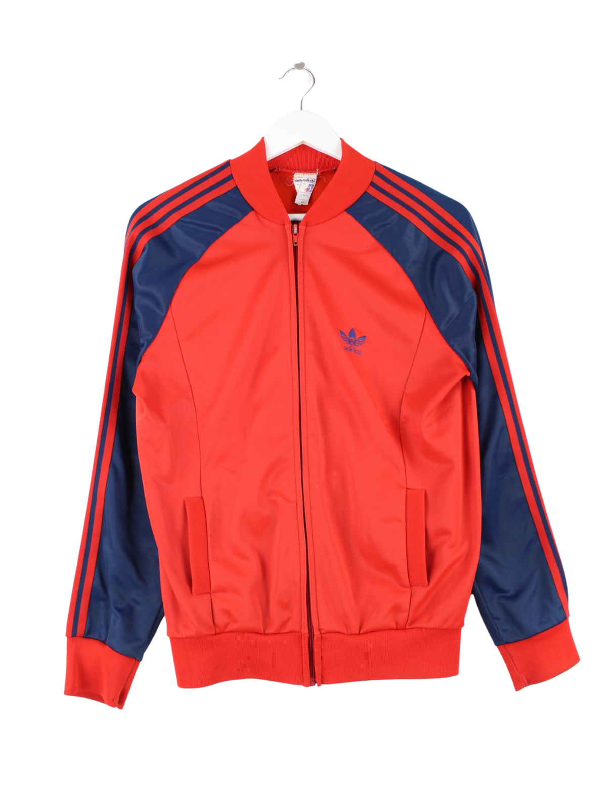 Trainingsjacke vom Brand Adidas in Größe S aus den 70'ern. Sie ist aus Synthetik gefertigt und in Rot zu bekommen.