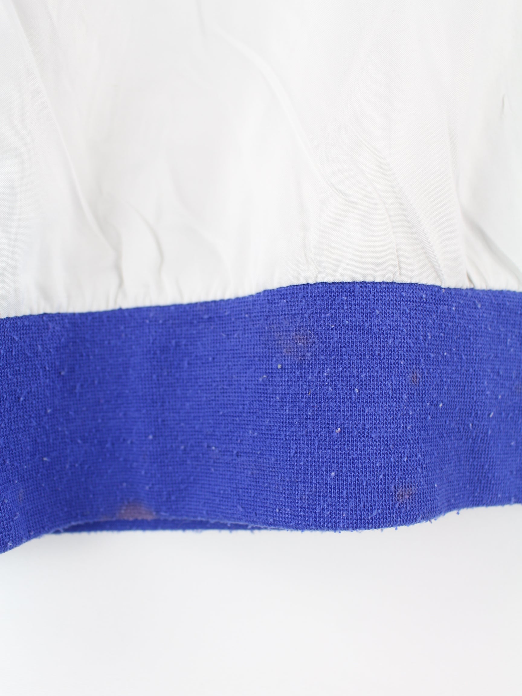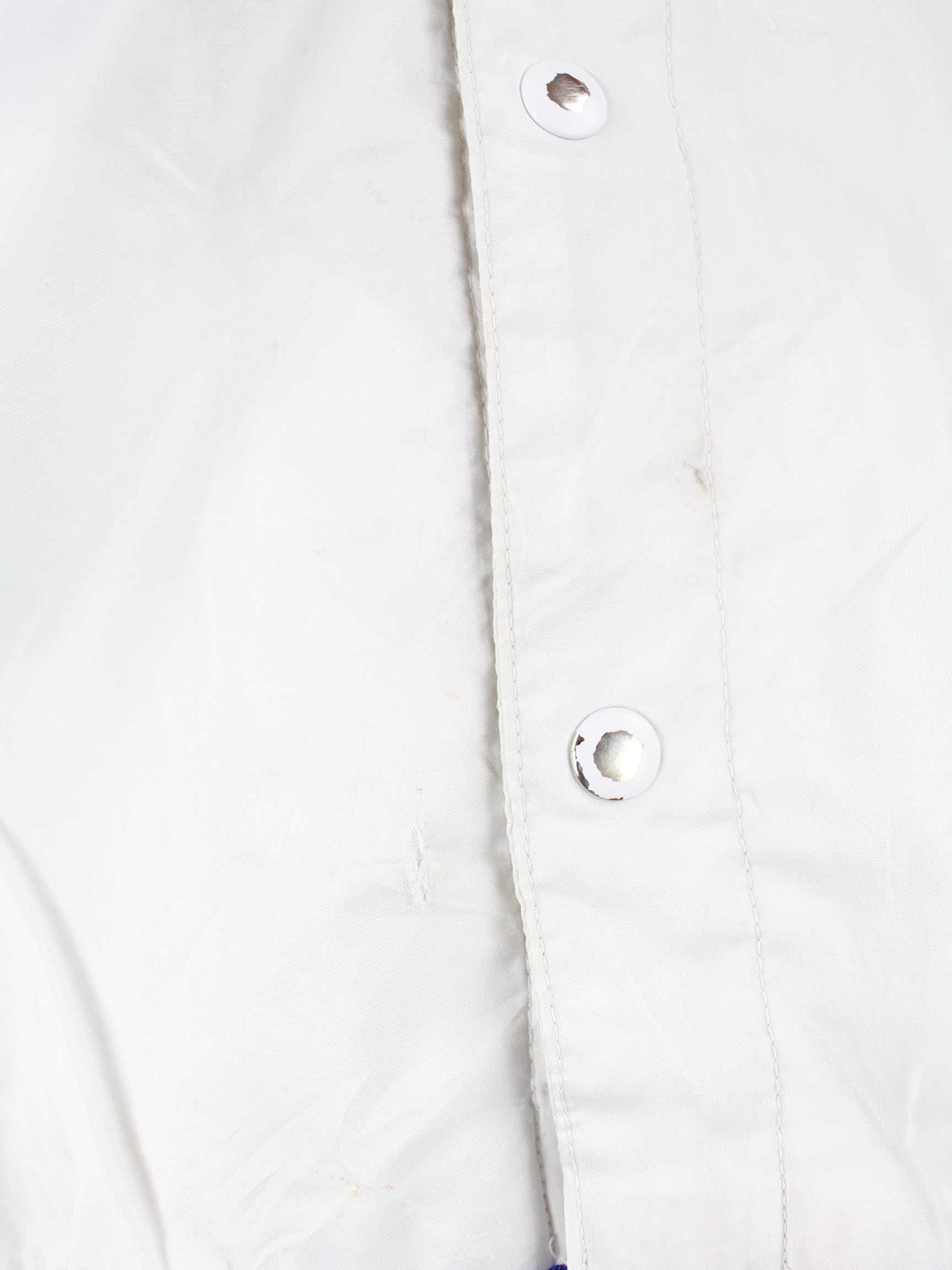 Weiße Trainingsjacke aus dem Hause Adidas aus den 80'ern in Größe M. Sie ist aus Synthetik gemacht. Den Zustand würden wir als 'In Ordnung' bezeichnen (vergl. Bilder).