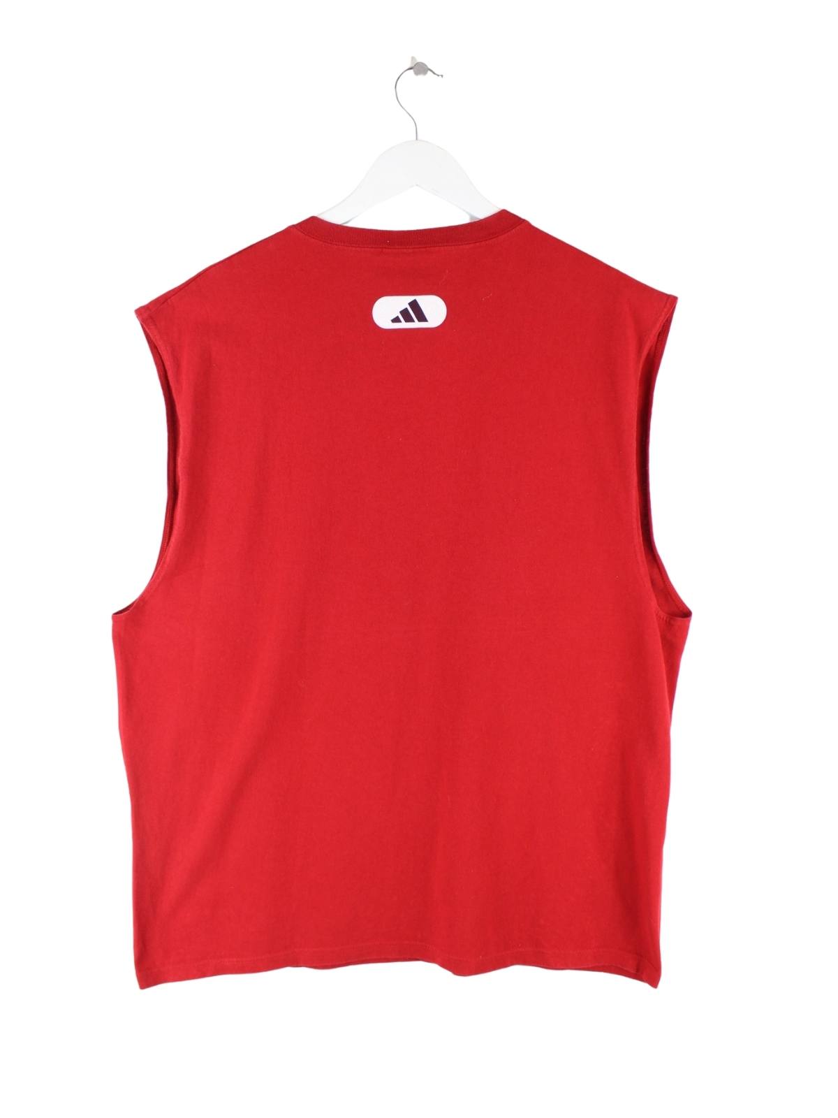Roter Tank Top vom Label Adidas aus den 90'ern in Größe XL. Er ist aus Baumwolle gemacht und in sehr gutem Zustand im Angebot. Mit tollem Basketball Print.