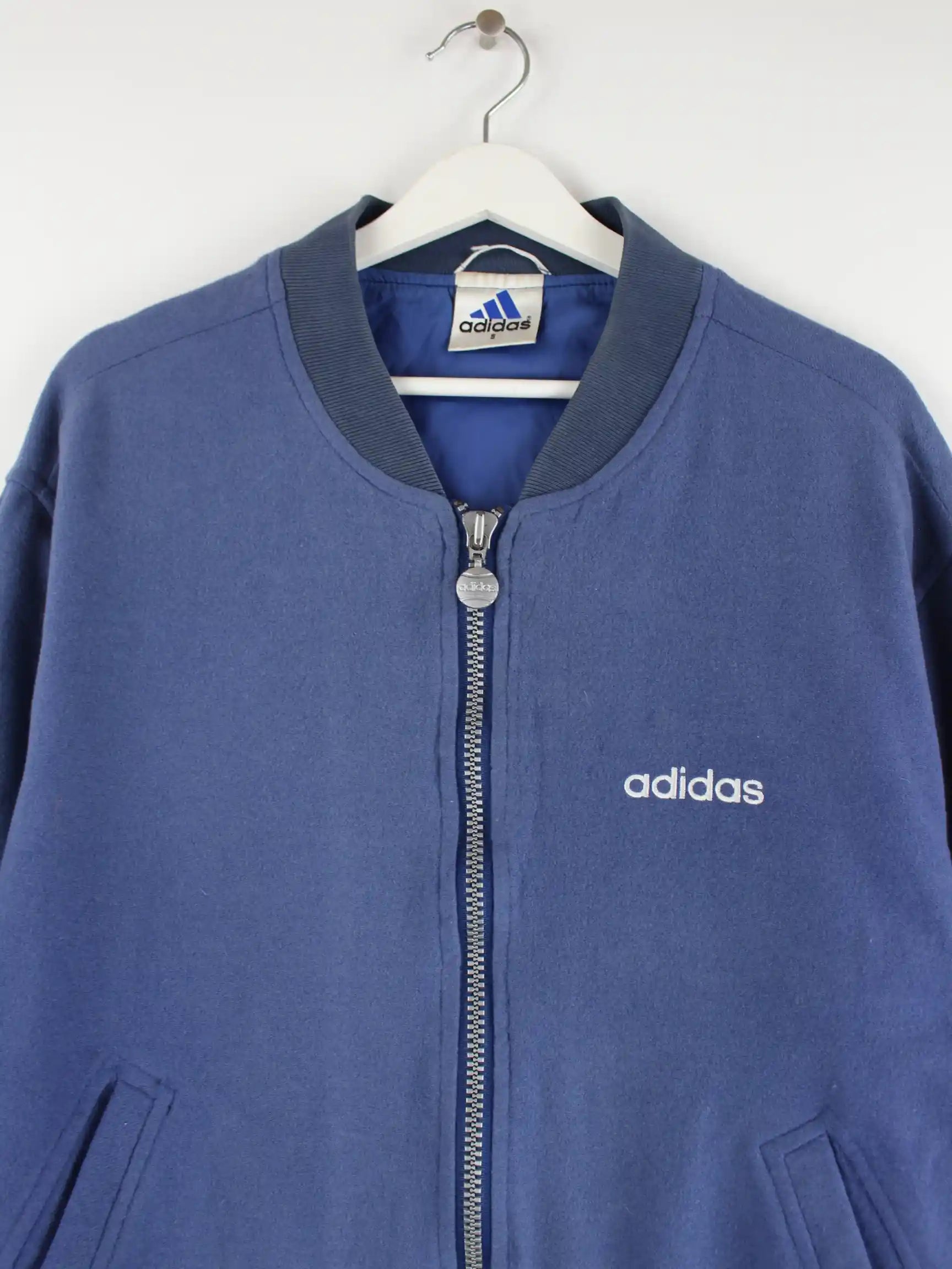 Leichte Jacke der Marke Adidas in Größe M aus den 90'ern. Sie ist aus einer Baumwollmischung produziert und in Blau im Angebot.