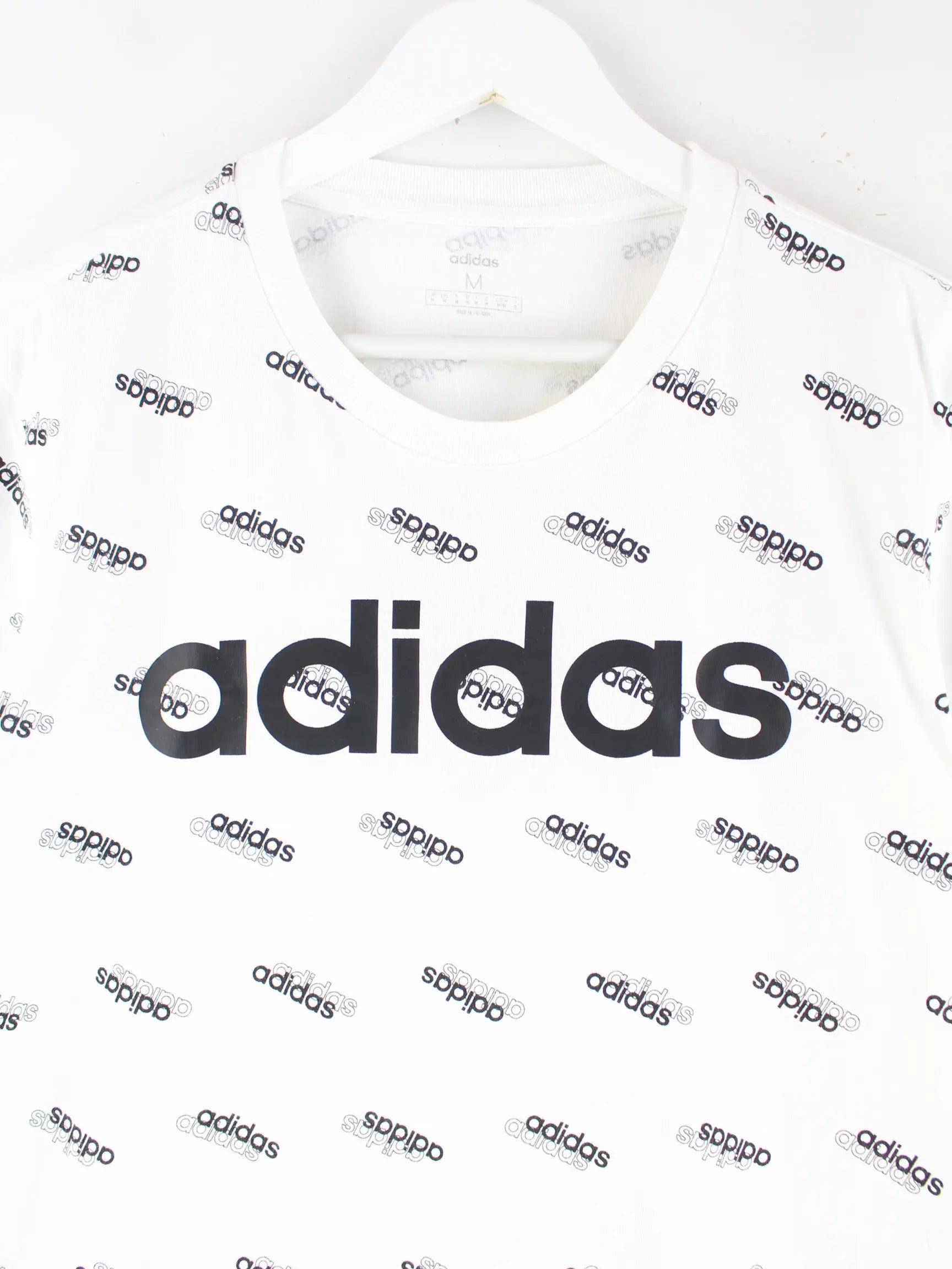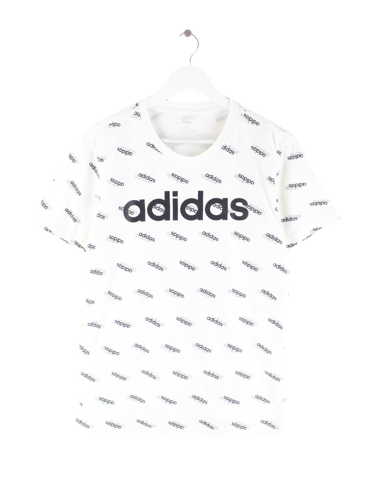Weißes T-Shirt aus dem Hause Adidas in Größe M. Es ist aus Baumwolle gefertigt. Den Zustand würden wir als 'In Ordnung' bezeichnen (vergl. Bilder).Mit schönem Over Print.