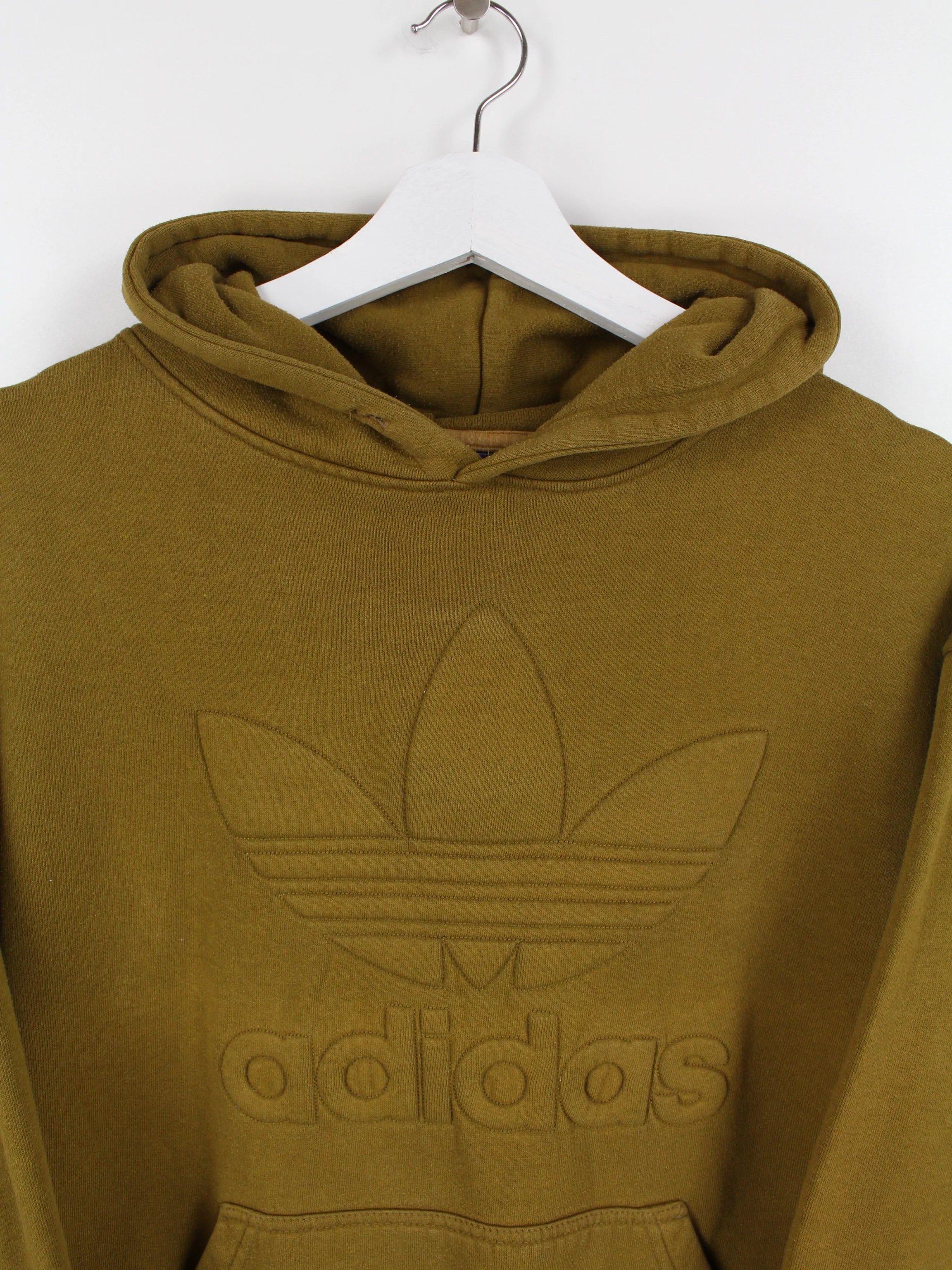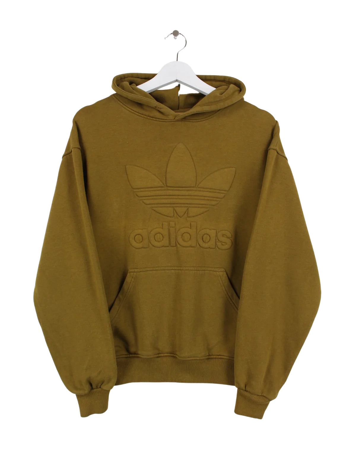 Sweat à capuche Adidas Originals Trefoil marron avec un grand logo sur la poitrine.