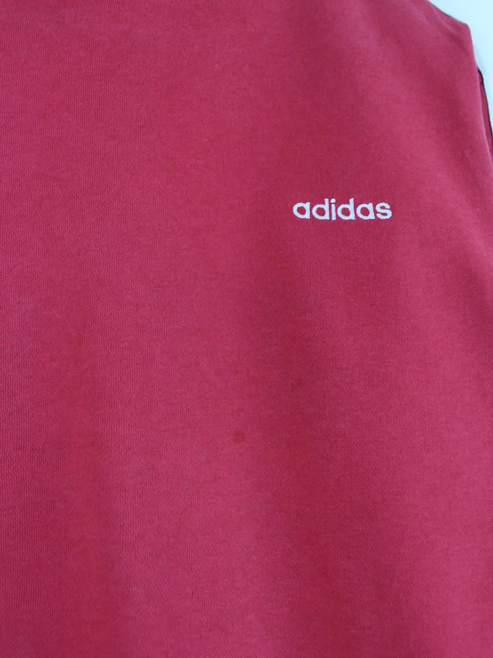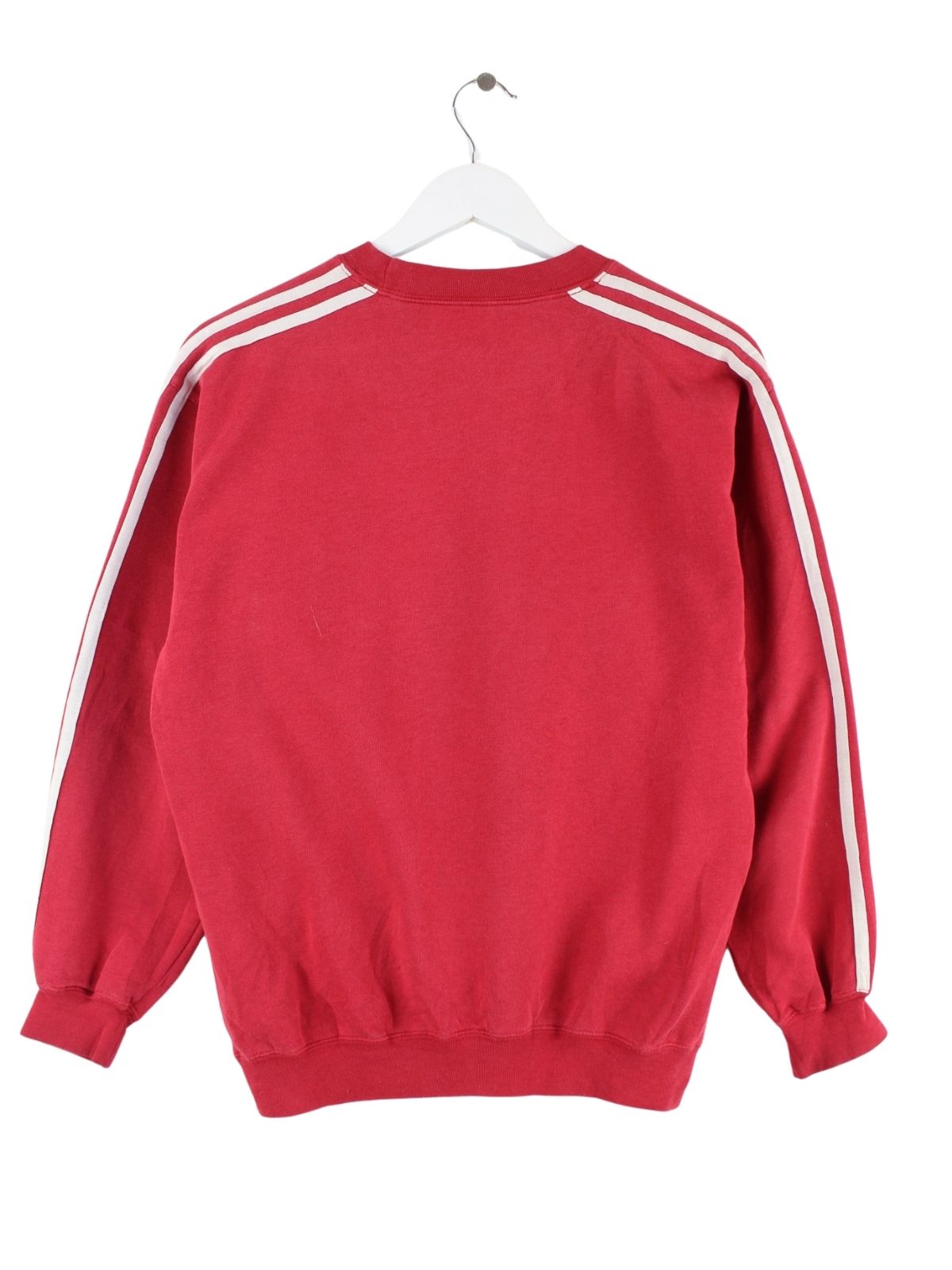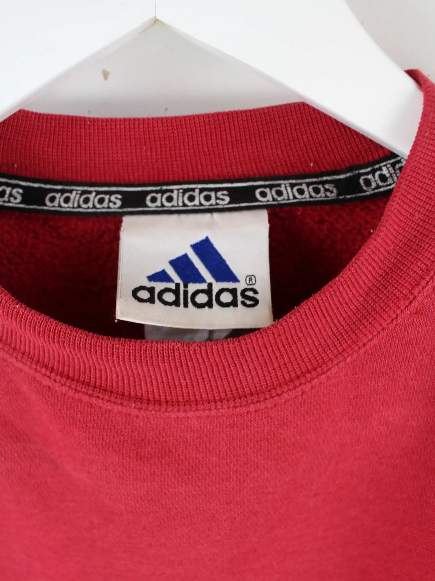 Sweater von Adidas in Größe S aus den 90'ern. Er ist aus einer Baumwollmischung und in Rot bei uns zu bekommen.