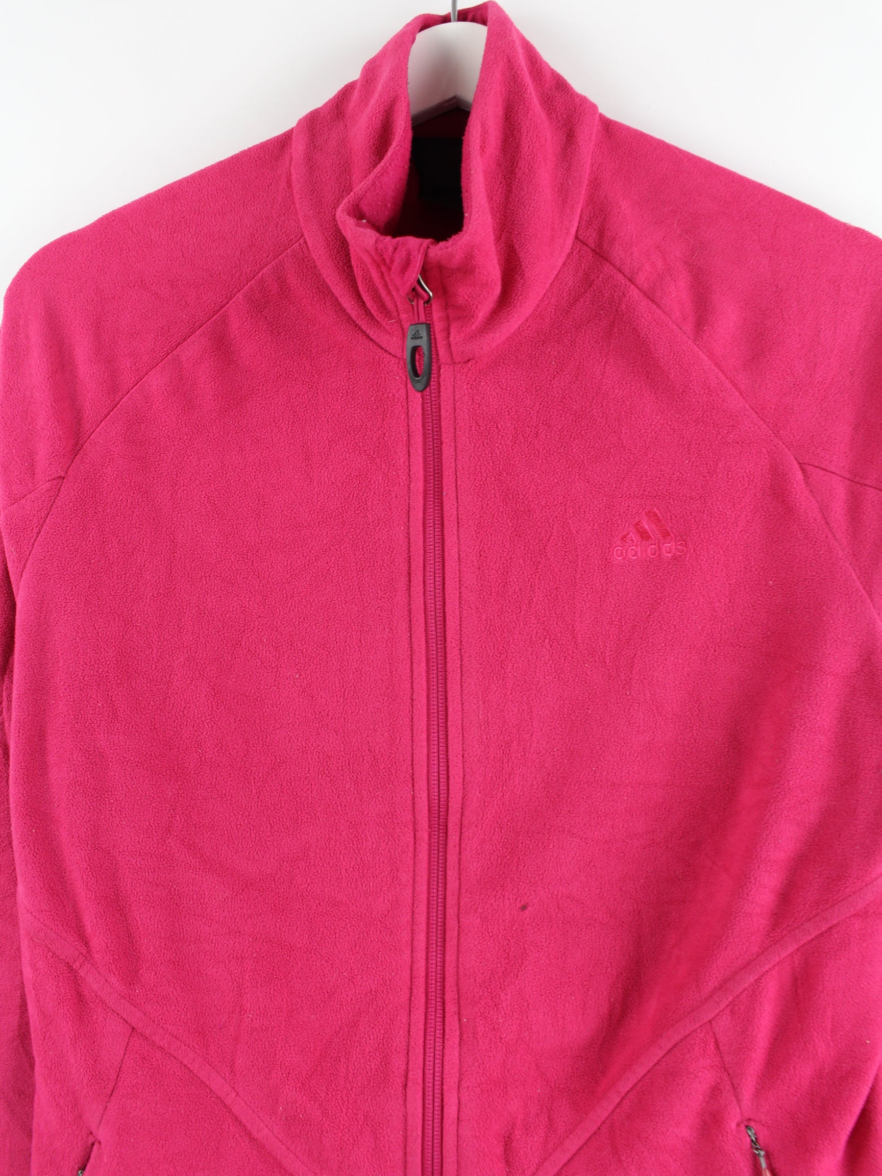 Sweatjacke der Marke Adidas in Größe L. Sie ist aus einer Baumwollmischung angefertigt und in Pink auf Lager.