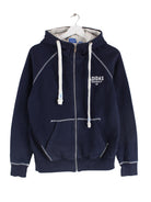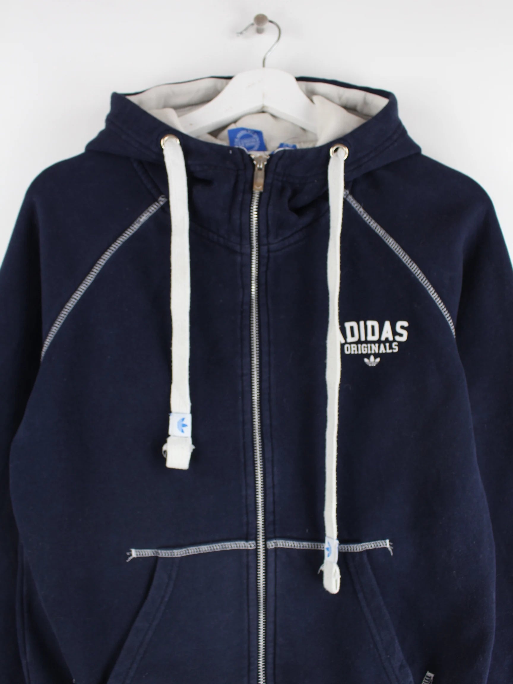 Hoodie aus dem Hause Adidas mit durchgehendem Reißverschluß in Größe S. Er ist aus einer Baumwollmischung hergestellt und in Blau bei uns zu bekommen. Mit schickem undefined Print.