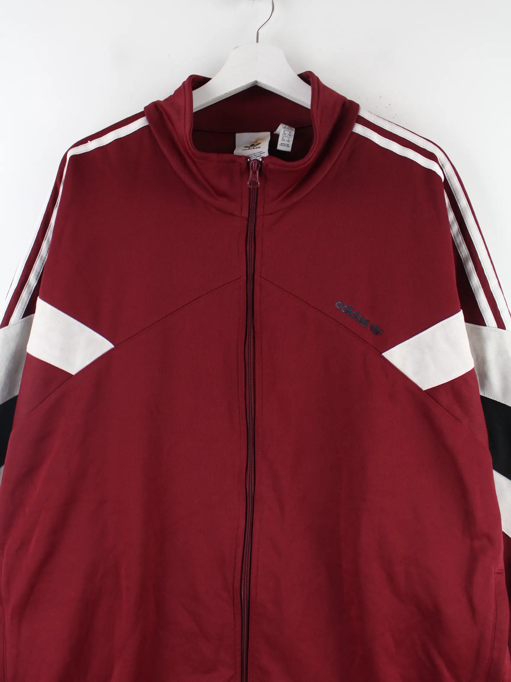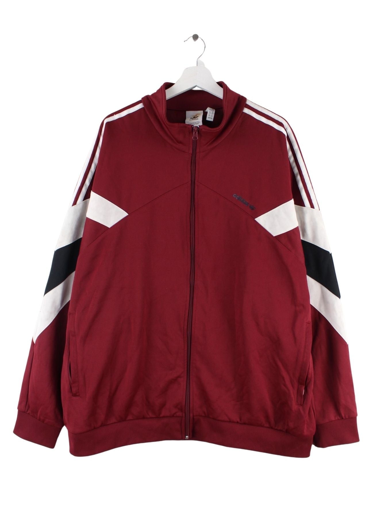Trainingsjacke aus dem Hause Adidas in Größe XXL. Sie ist aus Synthetik gemacht und in Rot vorrätig.