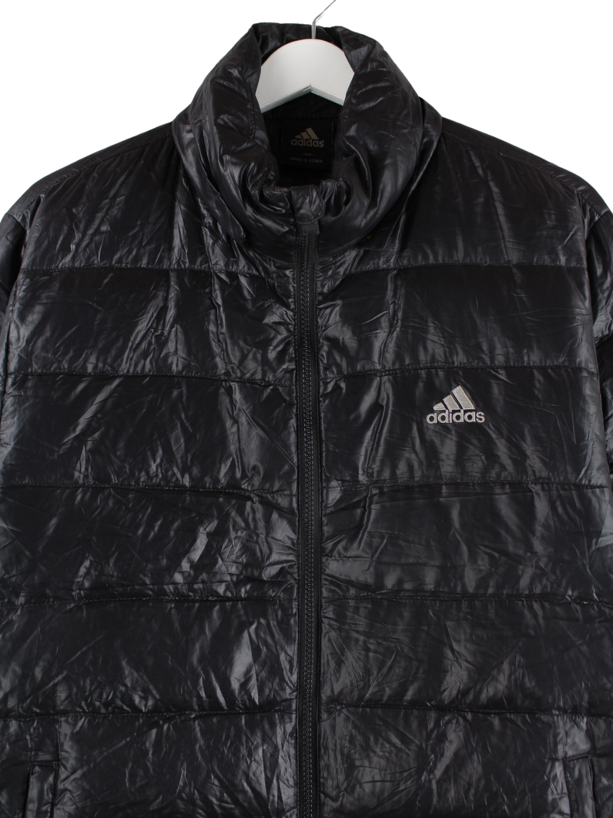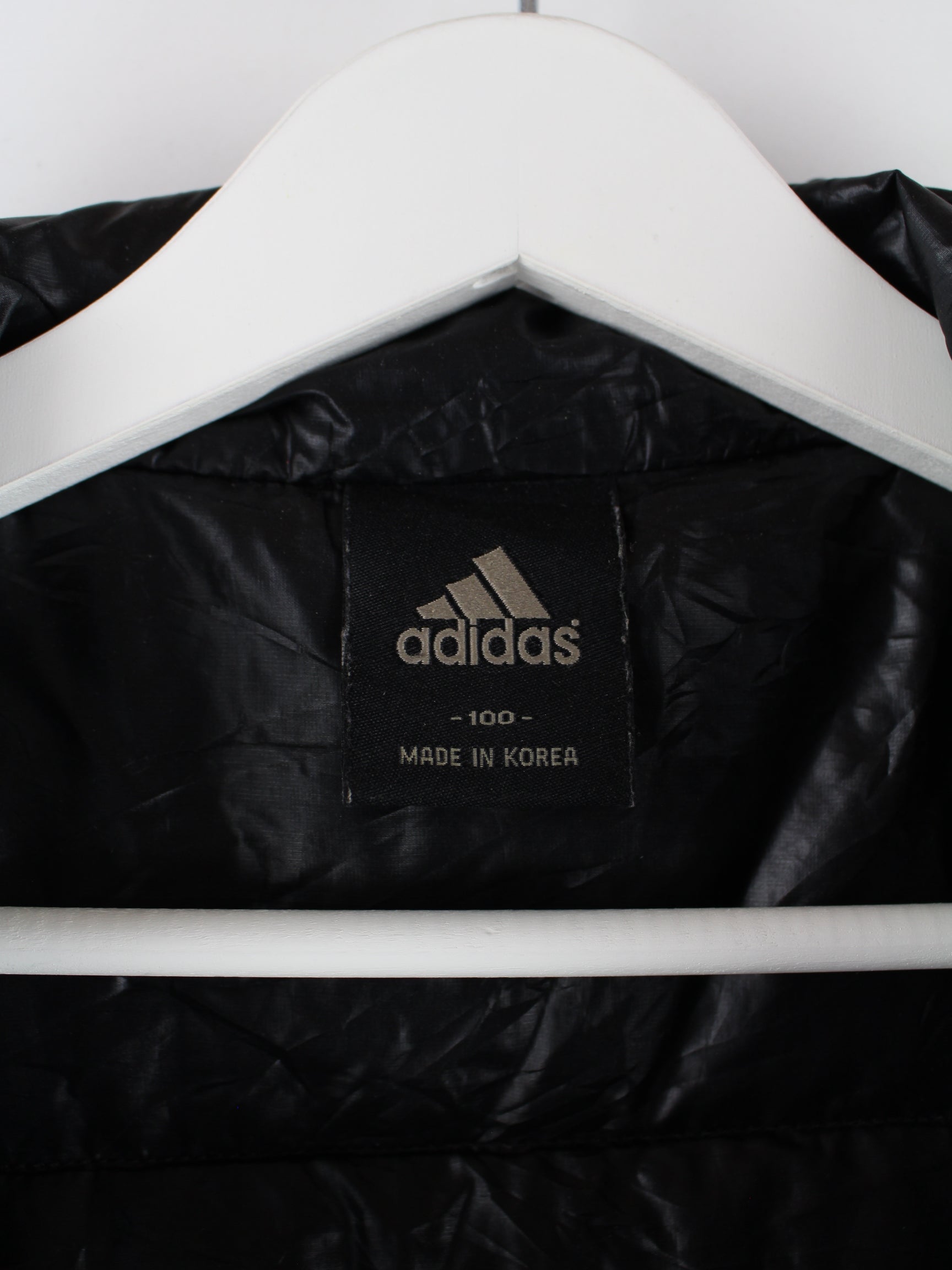 Jacke vom Label Adidas in Größe M aus Anfang der 2000'er. Sie ist aus Synthetik gemacht und in Schwarz auf Lager.