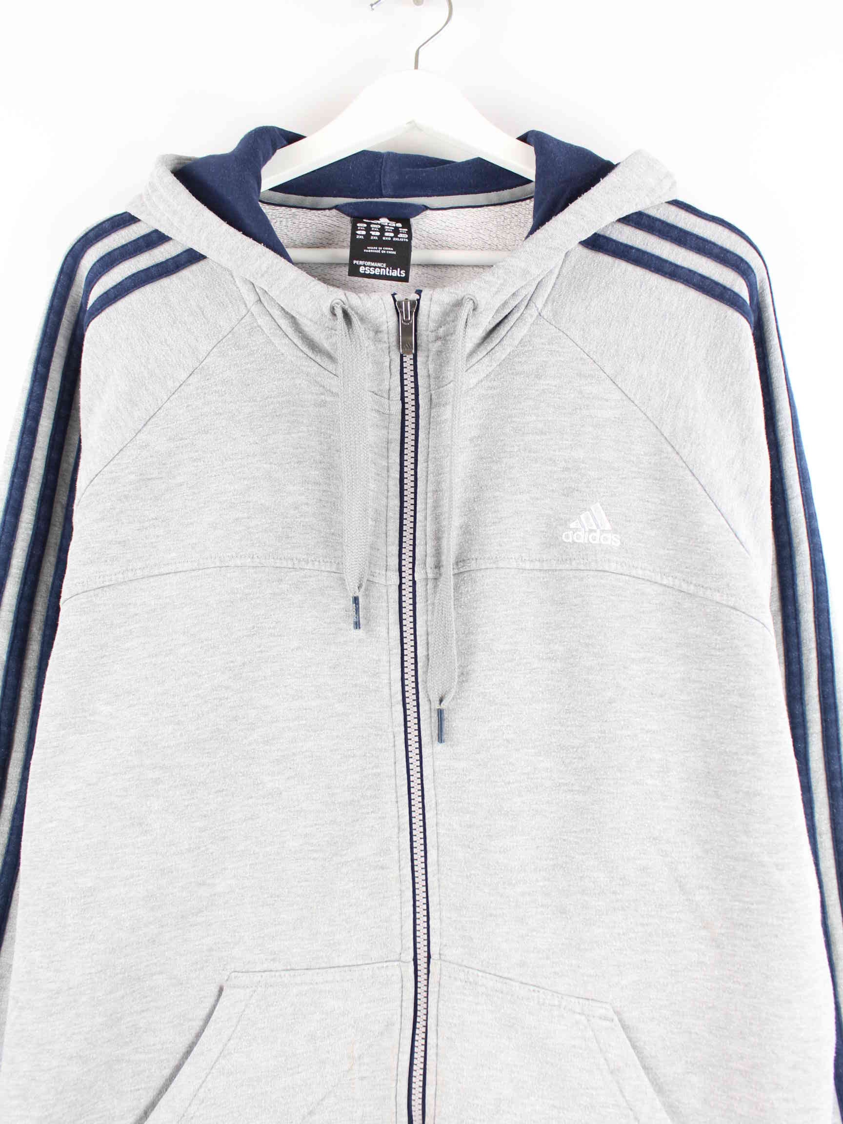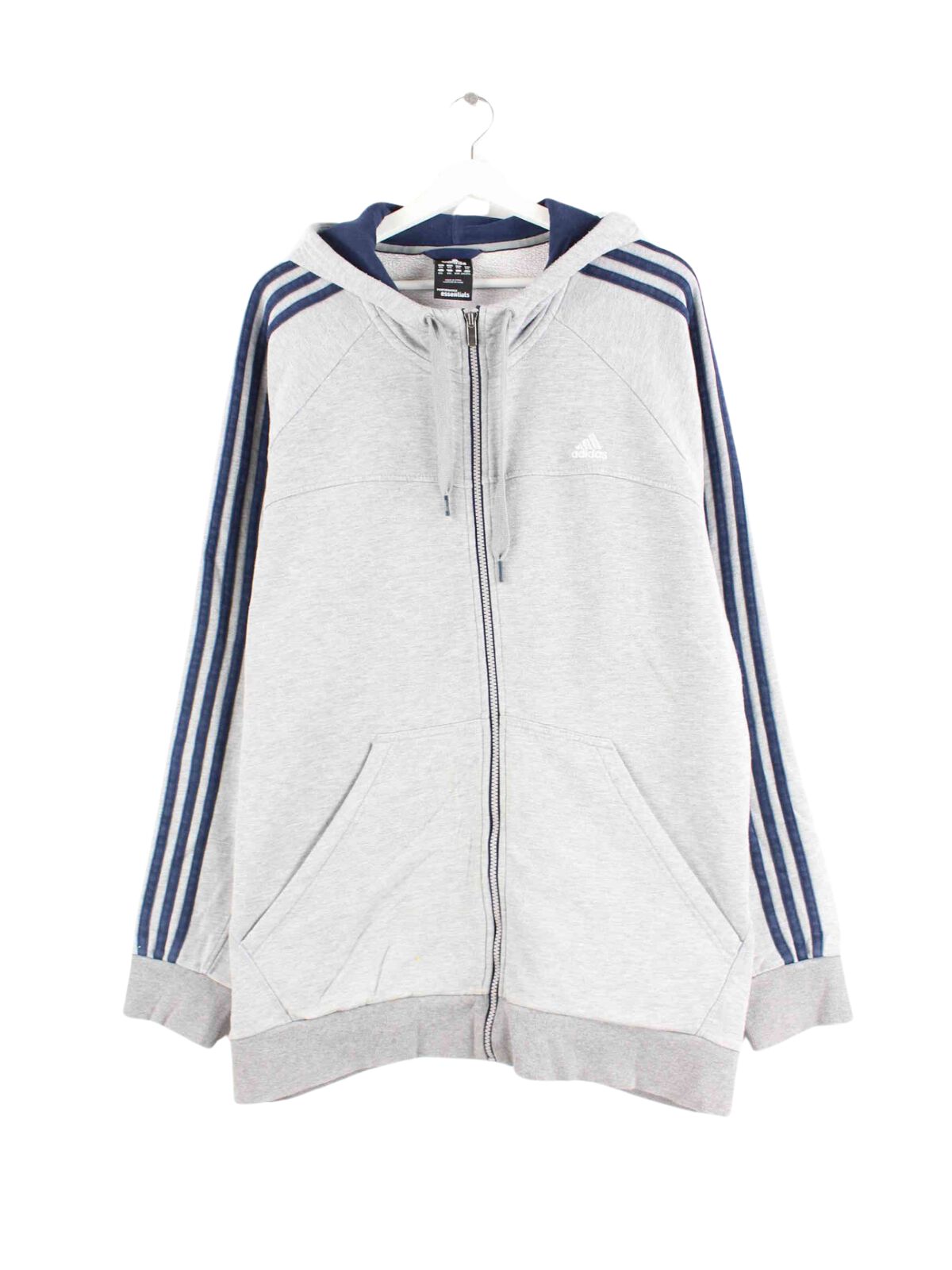 Grauer Hoodie mit langem Reißverschluß vom Brand Adidas in Größe XXL. Er ist aus einer Baumwollmischung gefertigt und in gutem Zustand auf Lager.