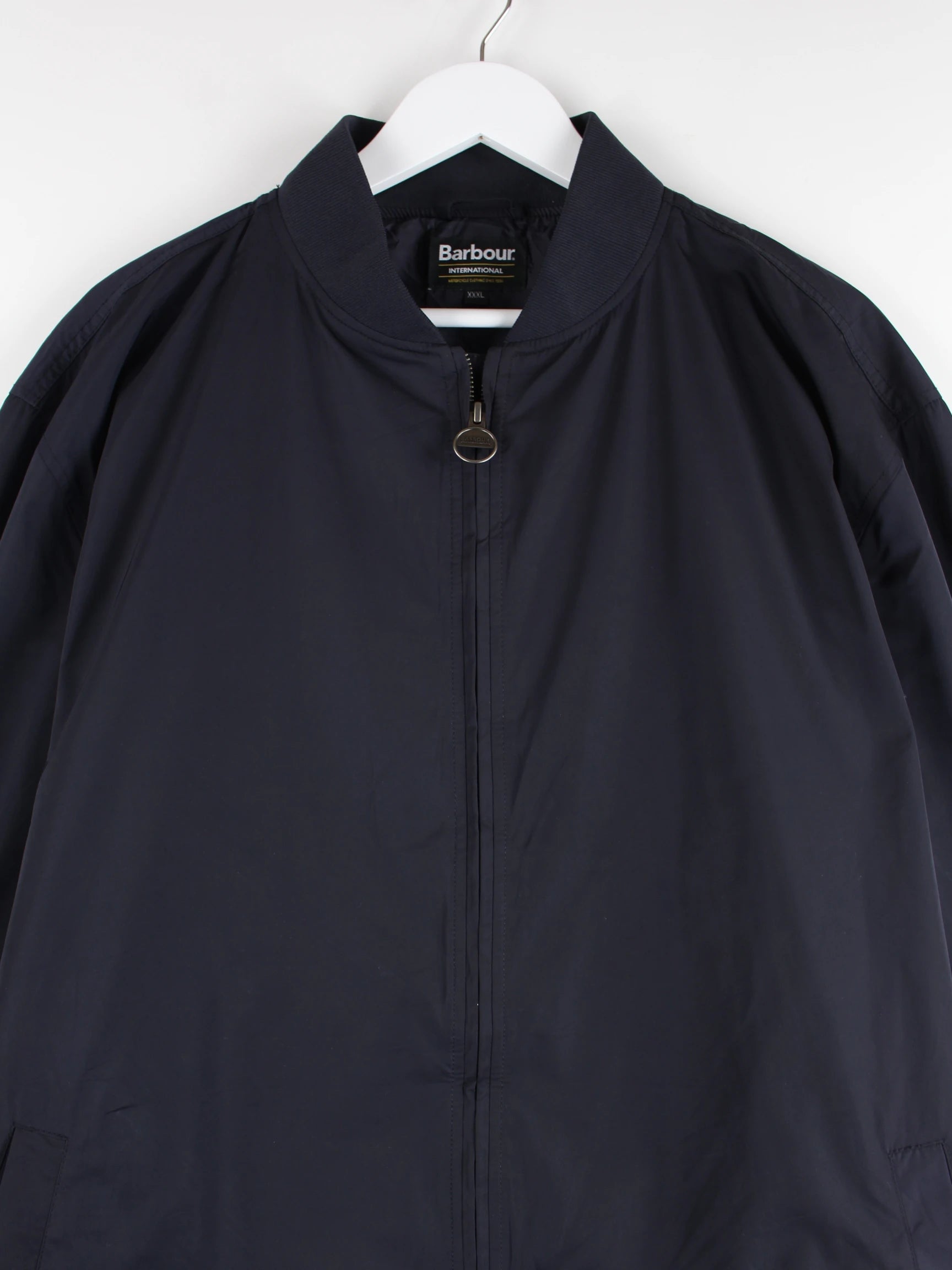 Schwarze Jacke vom Label Barbour in Größe 3XL. Sie ist aus Synthetik gemacht und in gutem Zustand auf Lager.