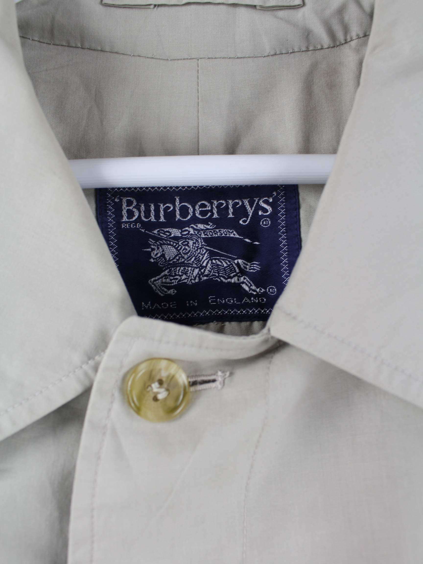 Beigefarbener Mantel vom Label Burberry aus den 80'ern in Größe XL. Er ist aus Baumwolle gemacht. Den Zustand würden wir als 'In Ordnung' bezeichnen (vergl. Bilder).