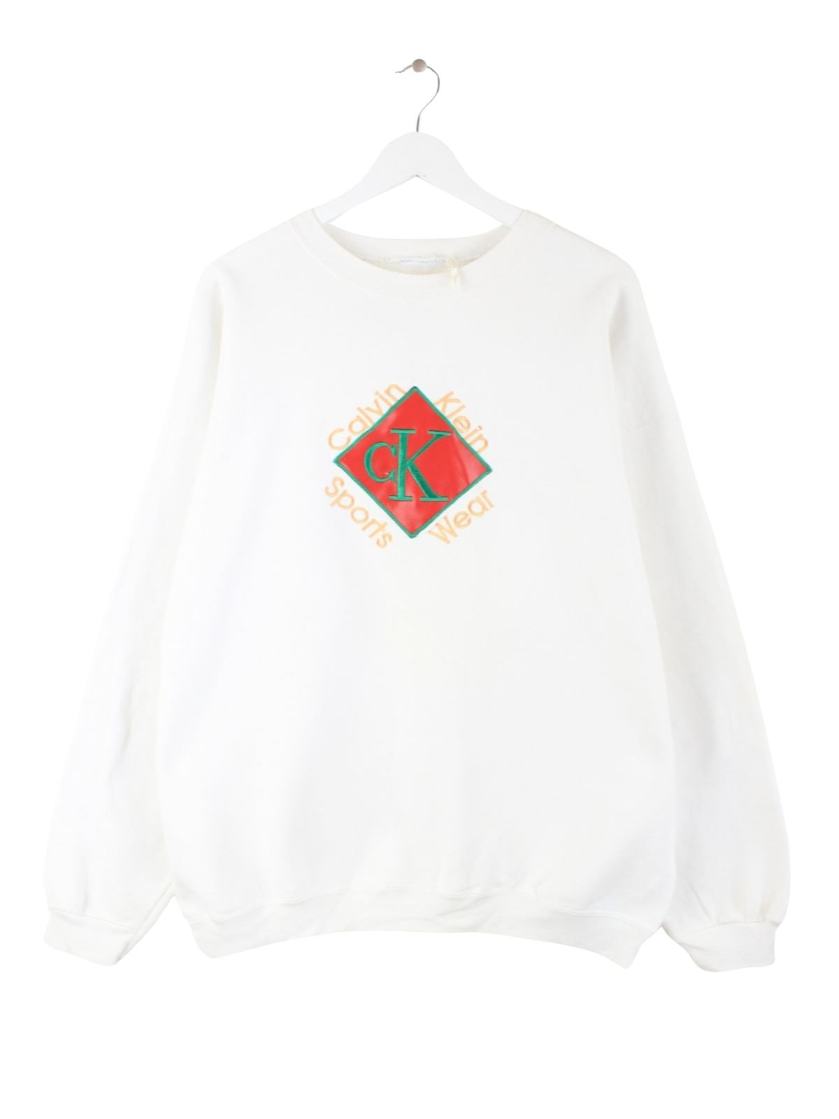 Sweater aus dem Hause Calvin Klein in Größe XL aus den 90'ern. Er ist aus einer Baumwollmischung produziert und in Weiß im Bestand.