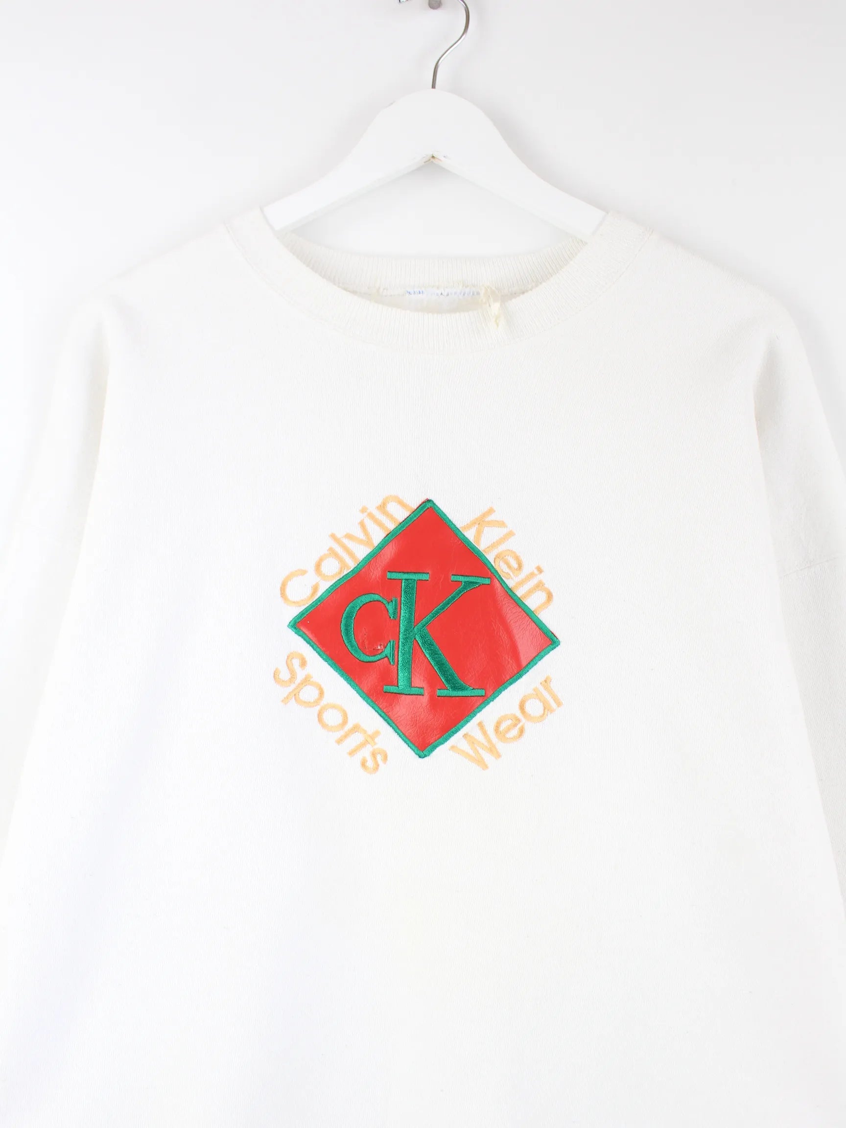 Calvin Klein 90s Vintage Big Logo Sweater Weiß XL