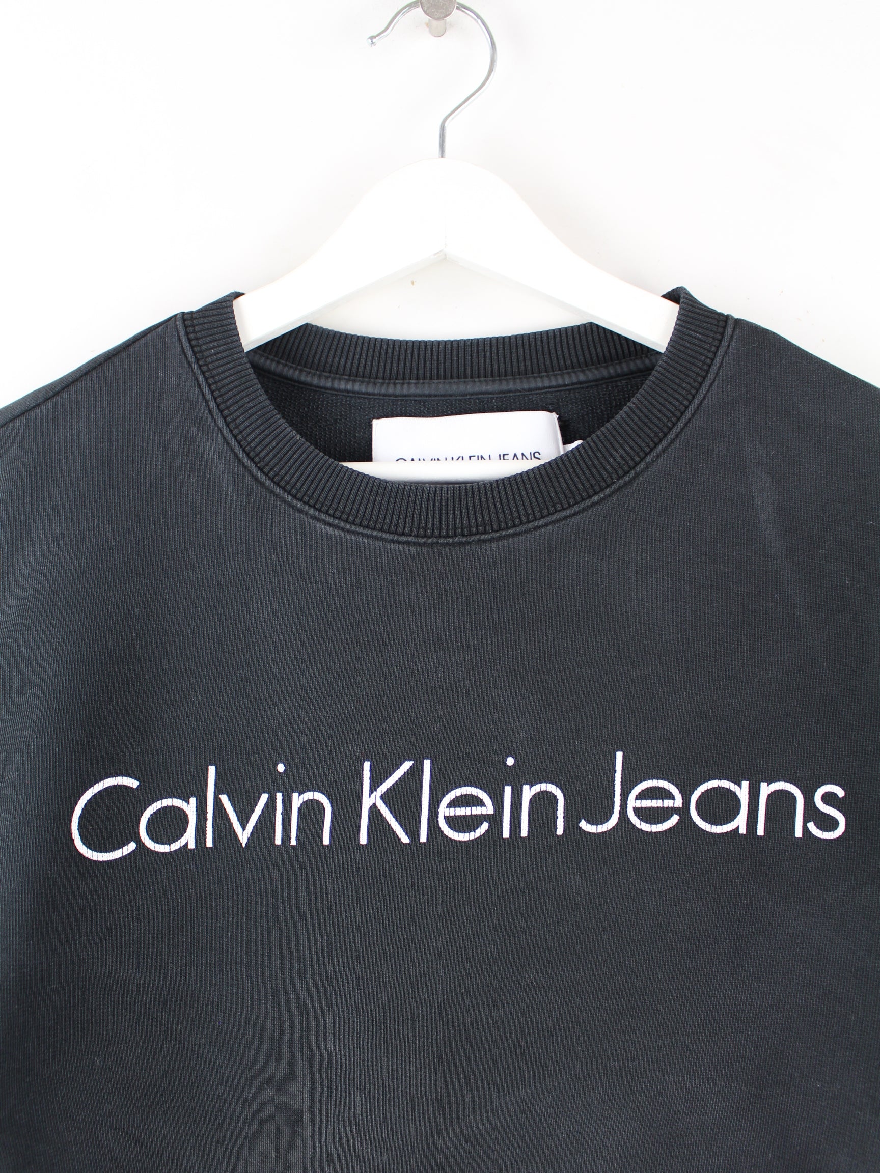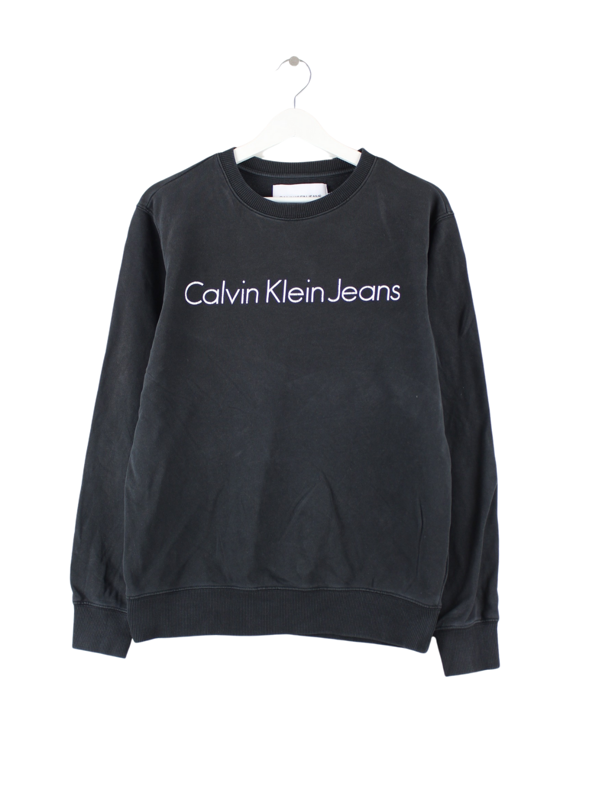 Sweater vom Brand Calvin Klein in Größe S. Er ist aus einer Baumwollmischung produziert und in Schwarz im Bestand. Mit schickem Jeans Print.
