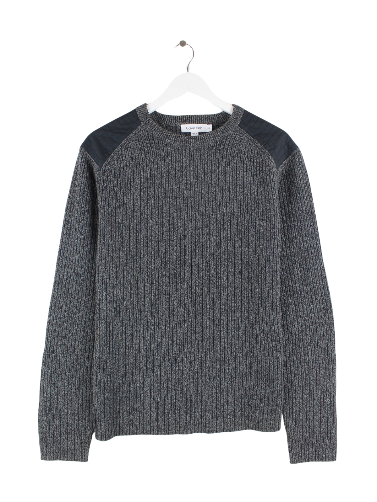 Grauer Pullover vom Label Calvin Klein in Größe M. Er ist aus einer Wollmischung angefertigt und in sehr gutem Zustand bei uns vorrätig.