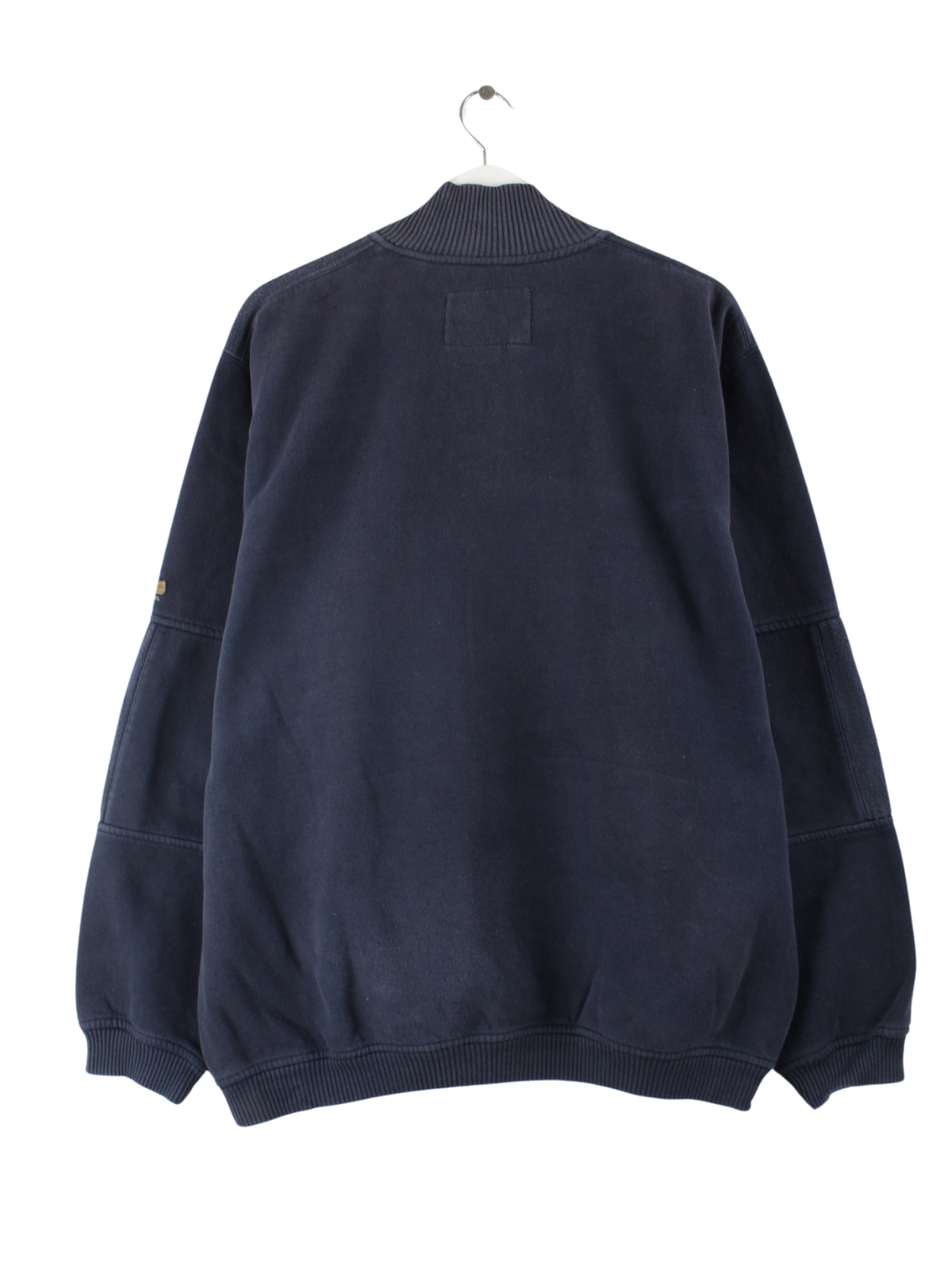 Sweater der Brand Champion mit halbem Reißverschluß in Größe XXL. Er ist aus einer Baumwollmischung gemacht und in Blau lieferbar.