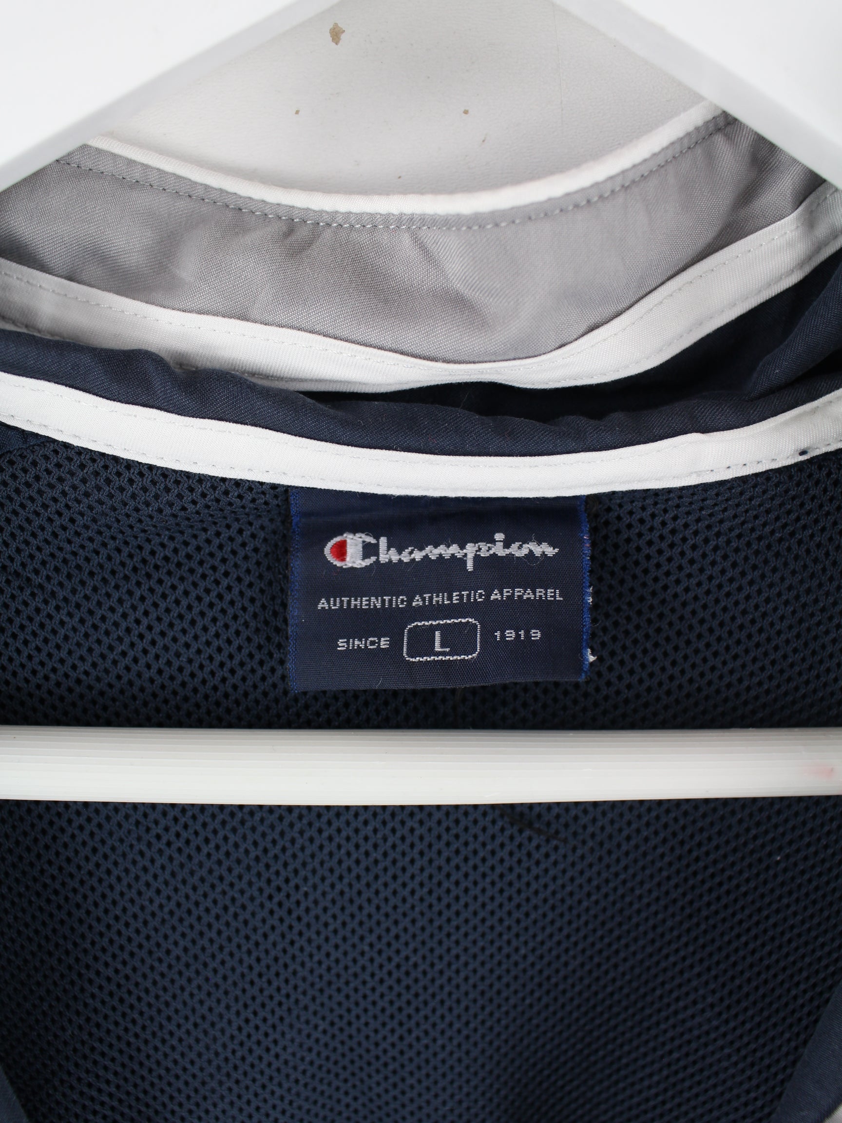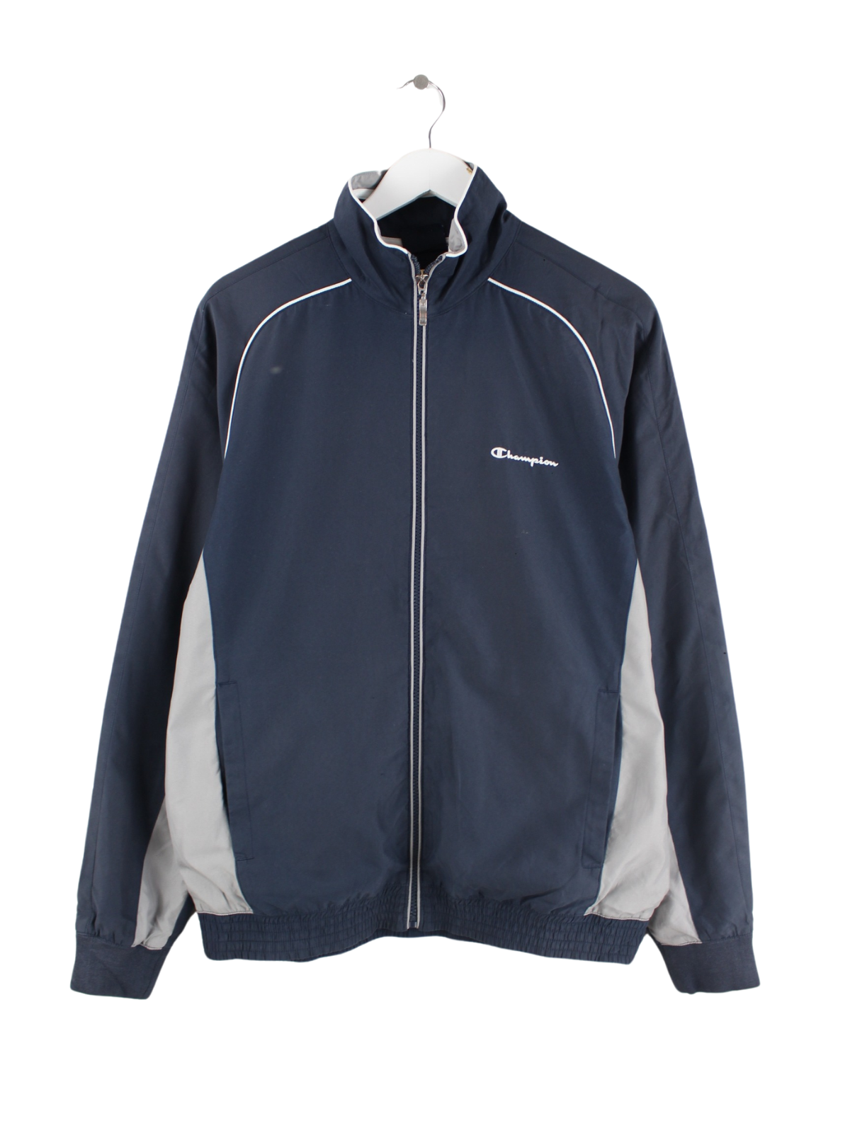 Trainingsjacke der Brand Champion in Größe L. Sie ist aus Synthetik hergestellt und in Blau in Stock.