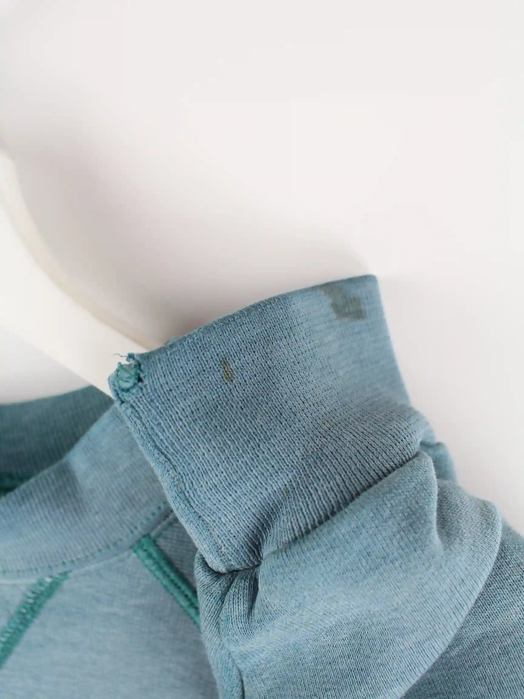 Mängel: Ein paar Flecken, Kragen und Ärmelbündchen beschädigt (siehe Bilder)